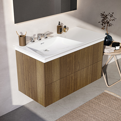 Модуль под раковину Conca 100х50,5х55 см, темный орех, левый, система push-to-open