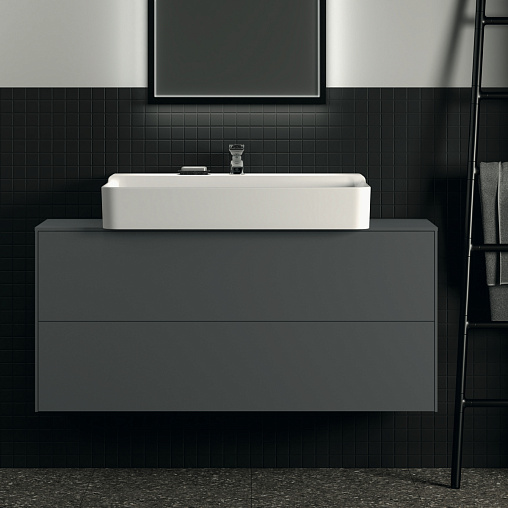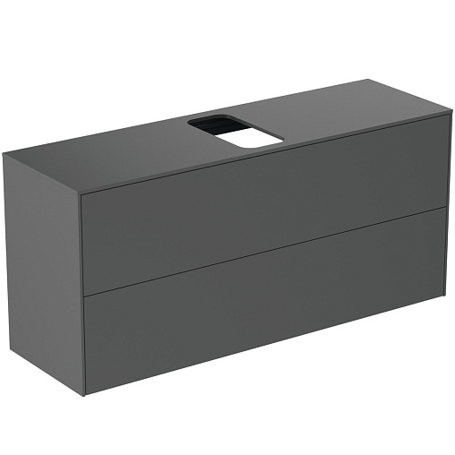 CONCA Тумба 120 см для раковины, узкая проекция 37 см, центральный вырез в столешнице. Комбинированная система для удобного использования (открытие "Push to open" + закрытие "Soft close"). Внутренняя отделка ящиков цвета антрацит. 2 внешних ящика. Для монтажа с раковинами Conca 40/50/60/80/100 см (с шлифованной нижней поверхностью) или Conca vessel 45/60 см или Extra 45/50/60/70/80/100 см (с шлифованной нижней поверхностью) или Extra vessel 50/60 см или Ipalyss vessel 40/55/60/65/80 см или Linda-X 50/60/75 см (с шлифованной нижней поверхностью)