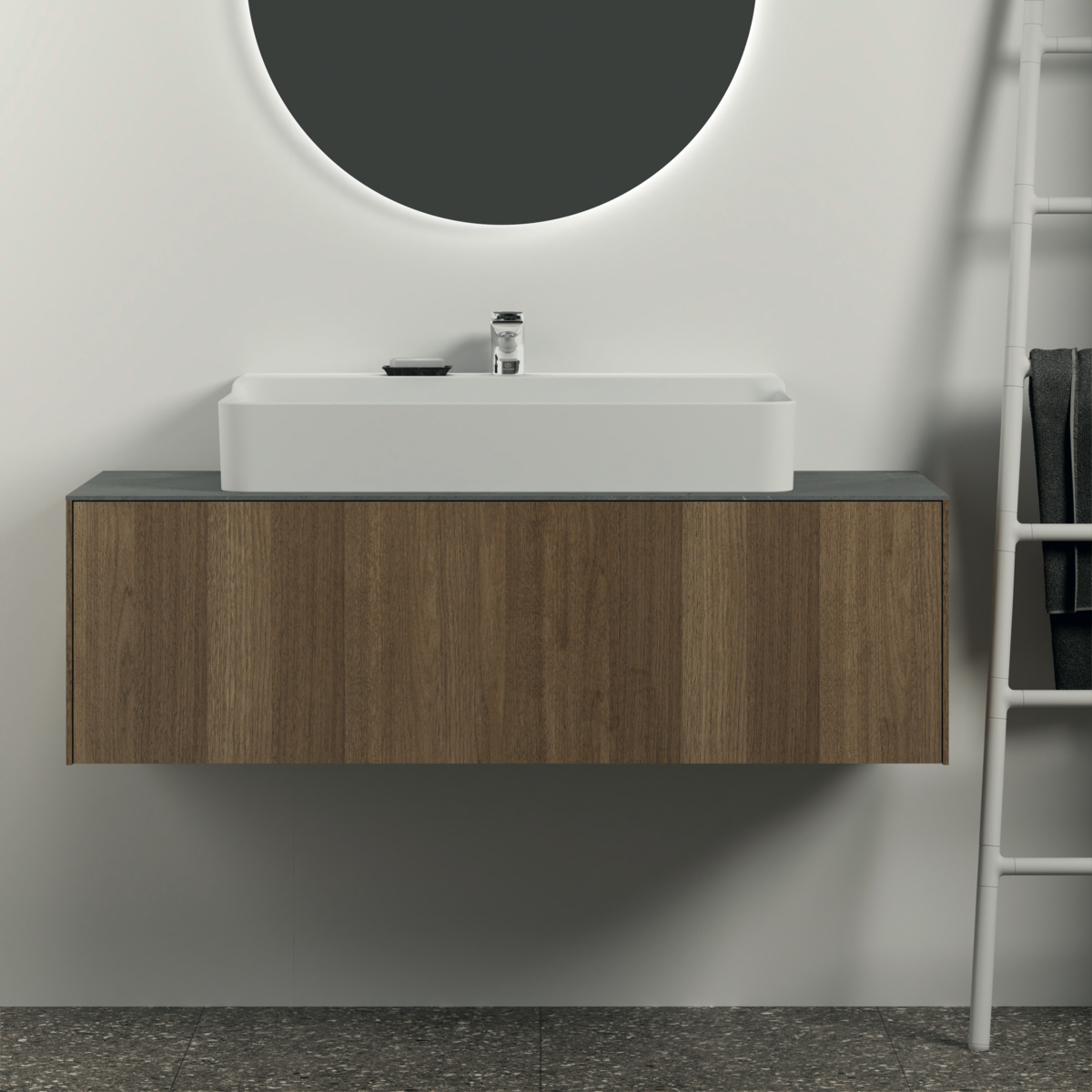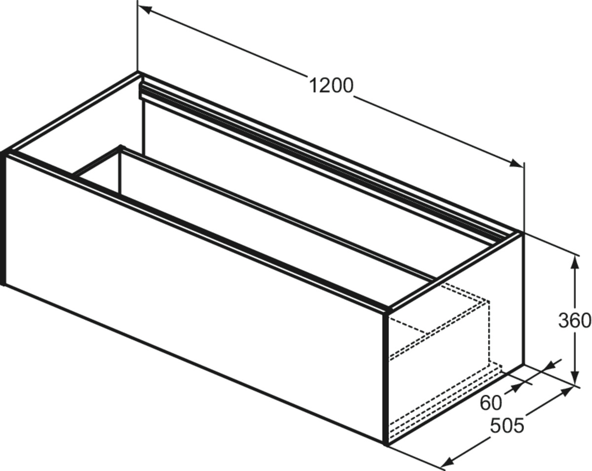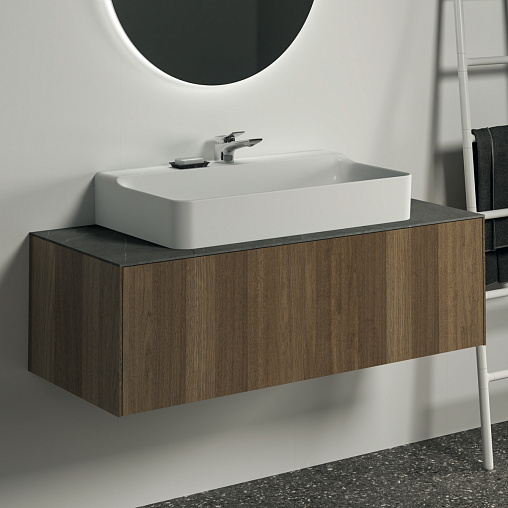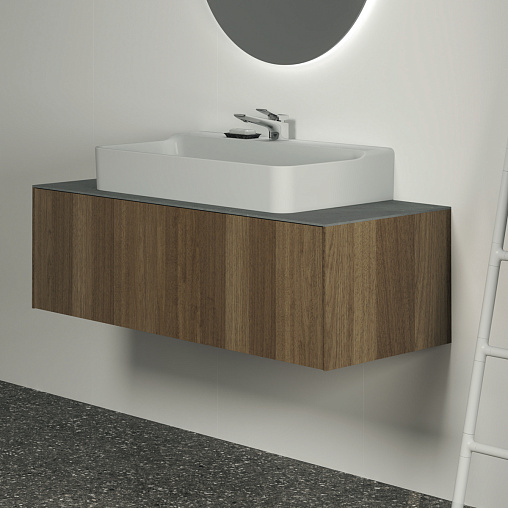 CONCA Тумба 120 см для раковины, без столешницы. Комбинированная система для удобного использования (открытие "Push to open" + закрытие "Soft close"). Внутренняя отделка ящиков цвета антрацит. 1 ящик. Для монтажа со столешницей из литьевого мрамора (без выреза / вырез под заказ) 120 см T3972.