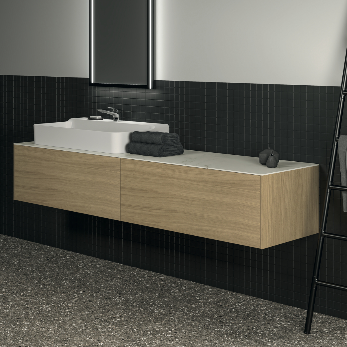 CONCA Тумба 200 см для раковины, без столешницы. Комбинированная система для удобного использования (открытие "Push to open" + закрытие "Soft close"). Внутренняя отделка ящиков цвета антрацит. 2 ящика. Для монтажа со столешницей из литьевого мрамора (без выреза / вырез под заказ) 200 см T4204.