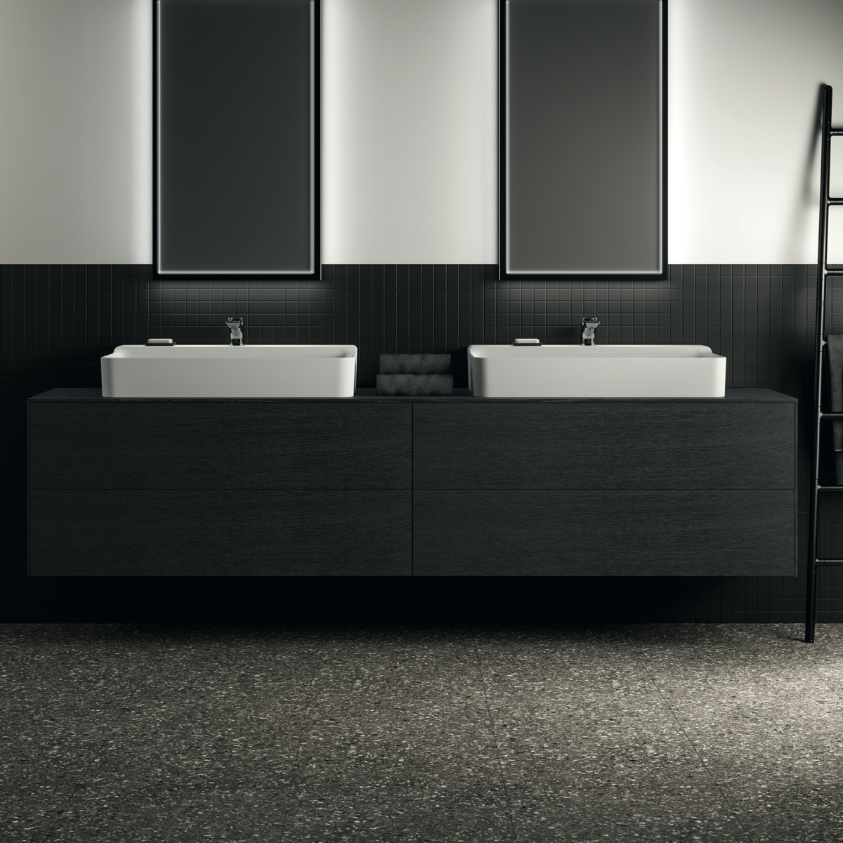 CONCA Тумба 240 см для раковины (вырез в столешнице под заказ). Комбинированная система для удобного использования (открытие "Push to open" + закрытие "Soft close"). Внутренняя отделка ящиков цвета антрацит. 4 ящика
