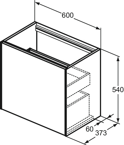 CONCA Тумба 60 см для раковины, узкая проекция 37 см, без столешницы. Комбинированная система для удобного использования (открытие "Push to open" + закрытие "Soft close"). Внутренняя отделка ящиков цвета антрацит. 1 внешний и 1 внутренний ящик. Для монтажа со столешницей из литьевого мрамора (без выреза / вырез под заказ) 60 см T4344.
