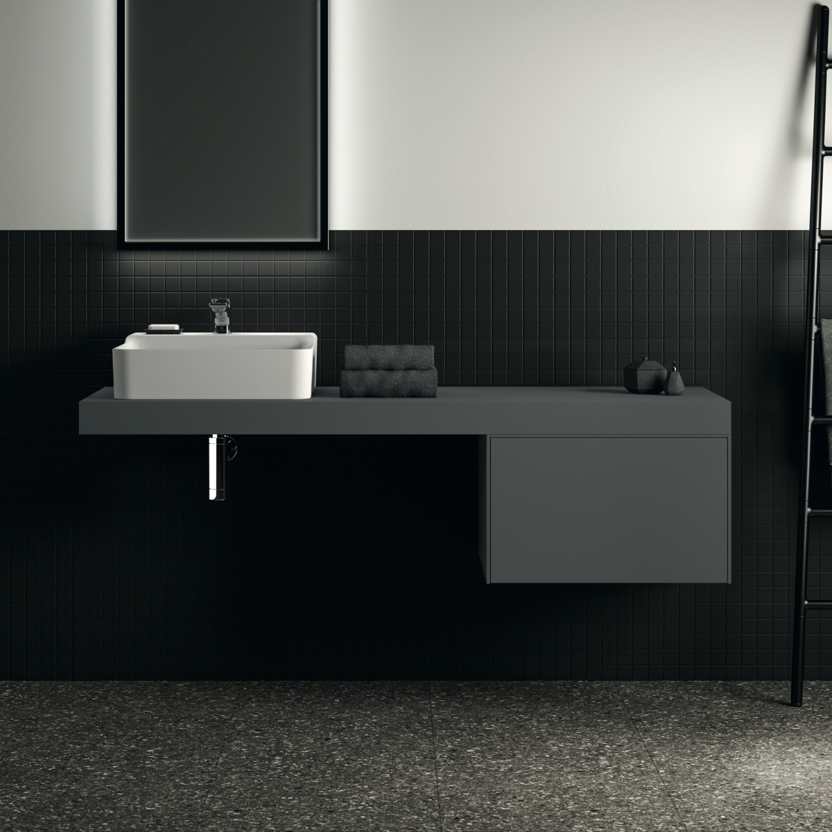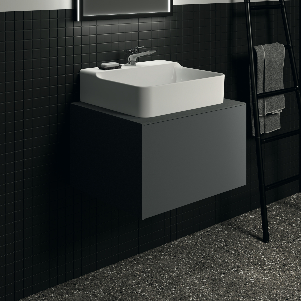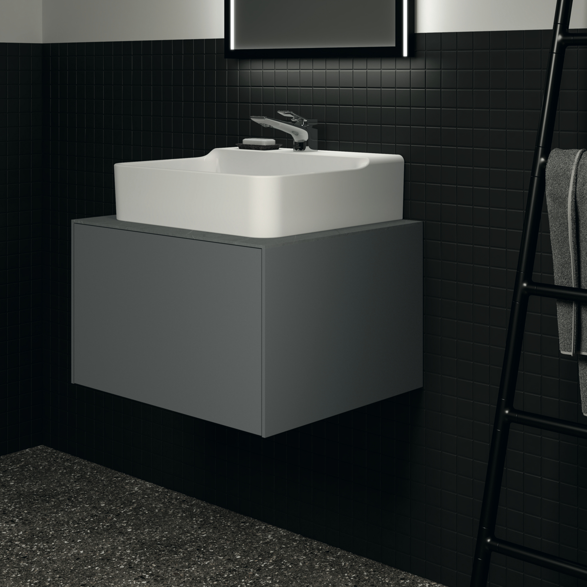 Модуль под раковину Conca 60х50,5х36 см, антрацит матовый, система push-to-open