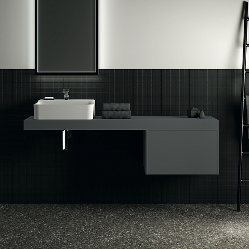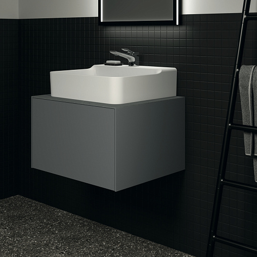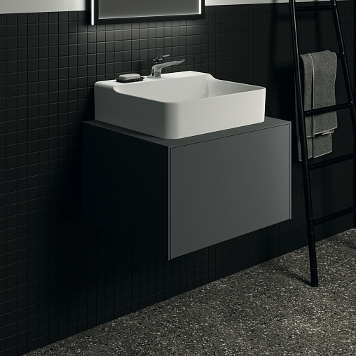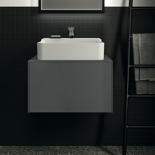 CONCA Тумба 60 см для раковины, без столешницы. Комбинированная система для удобного использования (открытие "Push to open" + закрытие "Soft close"). Внутренняя отделка ящиков цвета антрацит. 1 ящик. Для монтажа со столешницей из литьевого мрамора (без выреза / вырез под заказ) 60 см T3969.