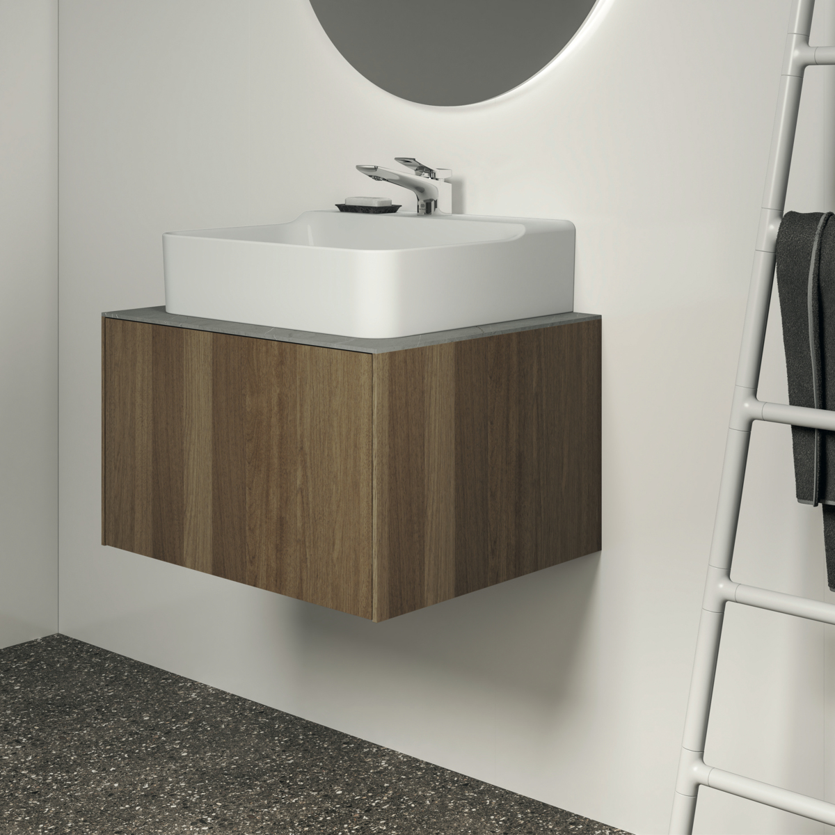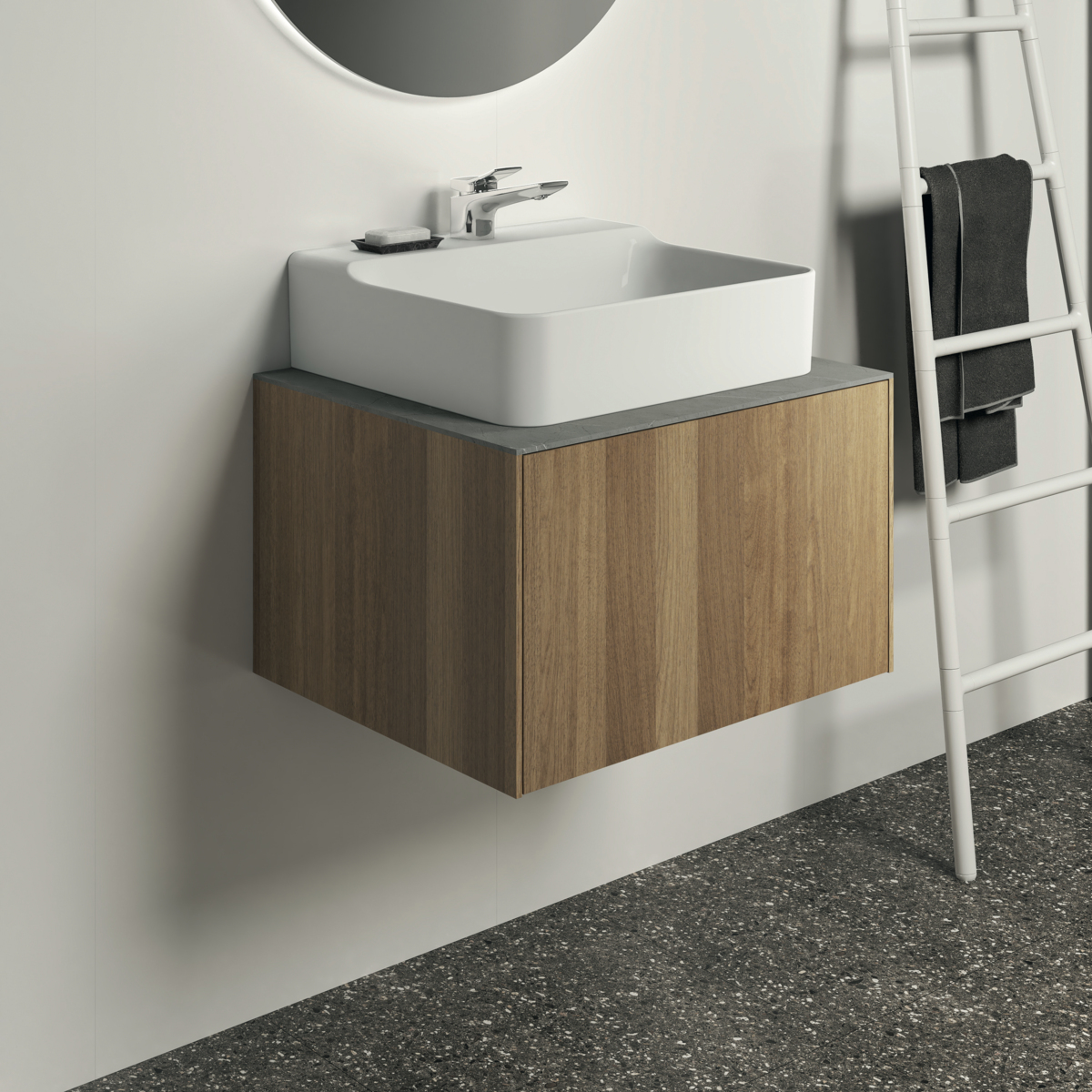 CONCA Тумба 60 см для раковины, без столешницы. Комбинированная система для удобного использования (открытие "Push to open" + закрытие "Soft close"). Внутренняя отделка ящиков цвета антрацит. 1 ящик. Для монтажа со столешницей из литьевого мрамора (без выреза / вырез под заказ) 60 см T3969.
