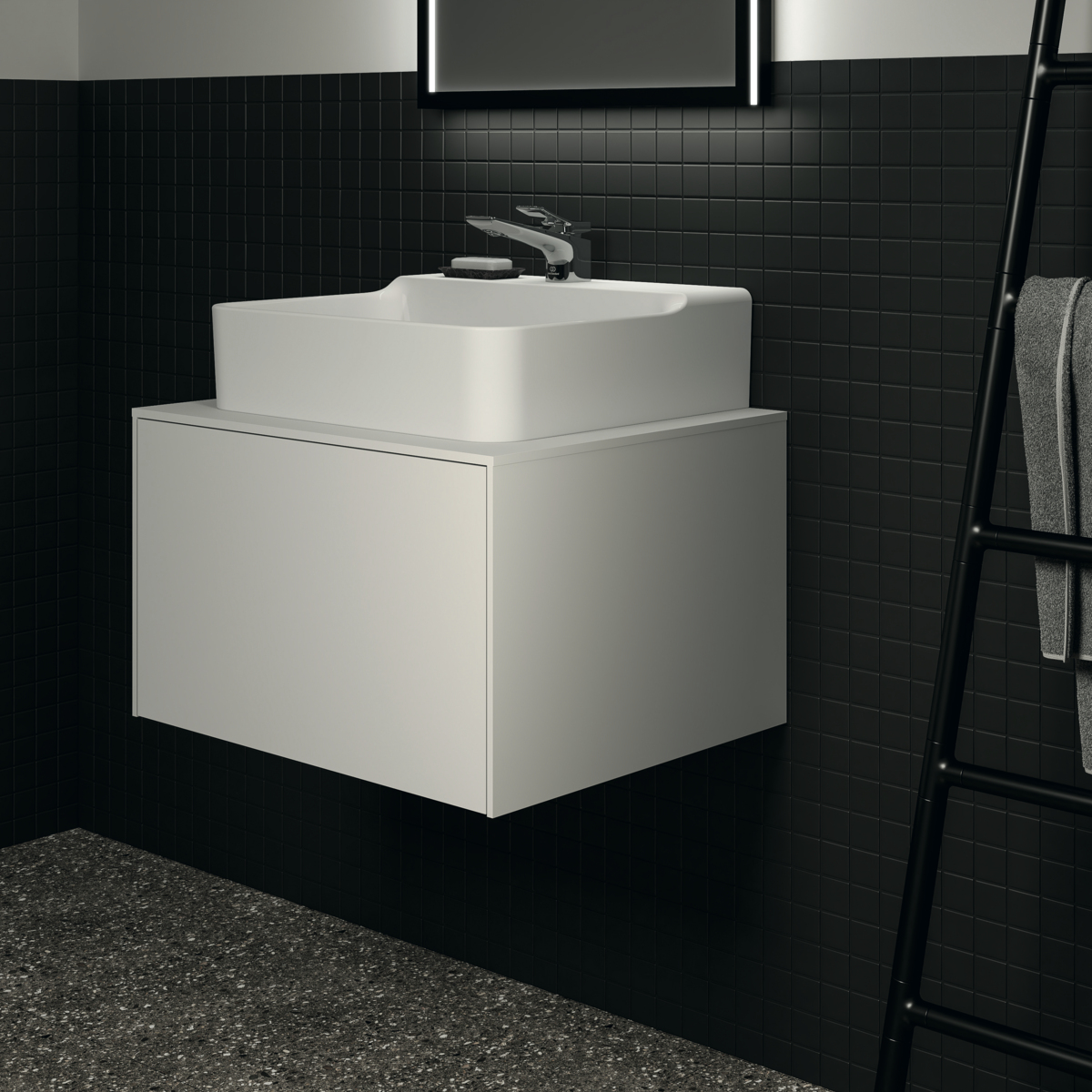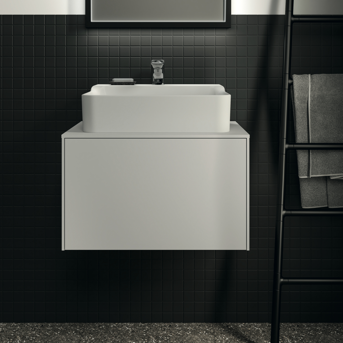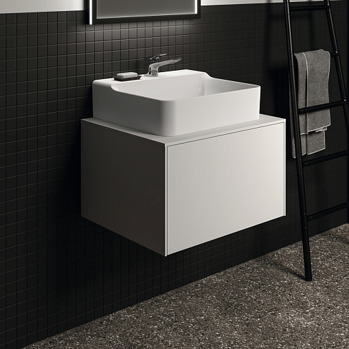 CONCA Тумба 60 см для раковины, центральный вырез в столешнице. Комбинированная система для удобного использования (открытие "Push to open" + закрытие "Soft close"). Внутренняя отделка ящиков цвета антрацит. 1 ящик. Рекомендуется сифон Space Saving EE23033967 (заказывается дополнительно). Для монтажа с раковинами Conca 40/50 см (с шлифованной нижней поверхностью) или Conca vessel 45 см или Extra 45/50 см (с шлифованной нижней поверхностью) или Extra vessel 50 см или Ipalyss vessel 40/55/60 см или Linda-X 50/60 см (с шлифованной нижней поверхностью)