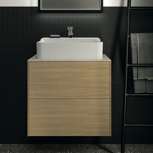 CONCA Тумба 60 см для раковины, без столешницы. Комбинированная система для удобного использования (открытие "Push to open" + закрытие "Soft close"). Внутренняя отделка ящиков цвета антрацит. 2 ящика. Для монтажа со столешницей из литьевого мрамора (без выреза / вырез под заказ) 60 см T3969.