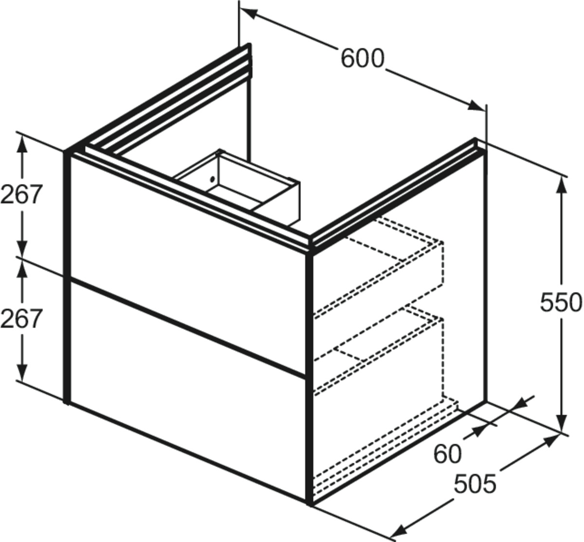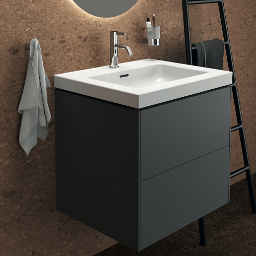 CONCA Тумба 60 см для раковины, без столешницы. Комбинированная система для удобного использования (открытие "Push to open" + закрытие "Soft close"). Внутренняя отделка ящиков цвета антрацит. 2 внешних ящика. Для монтажа с раковиной Extra Vanity 61 см или Calla Vanity 66,5 см или I.Life B Vanity 61 см