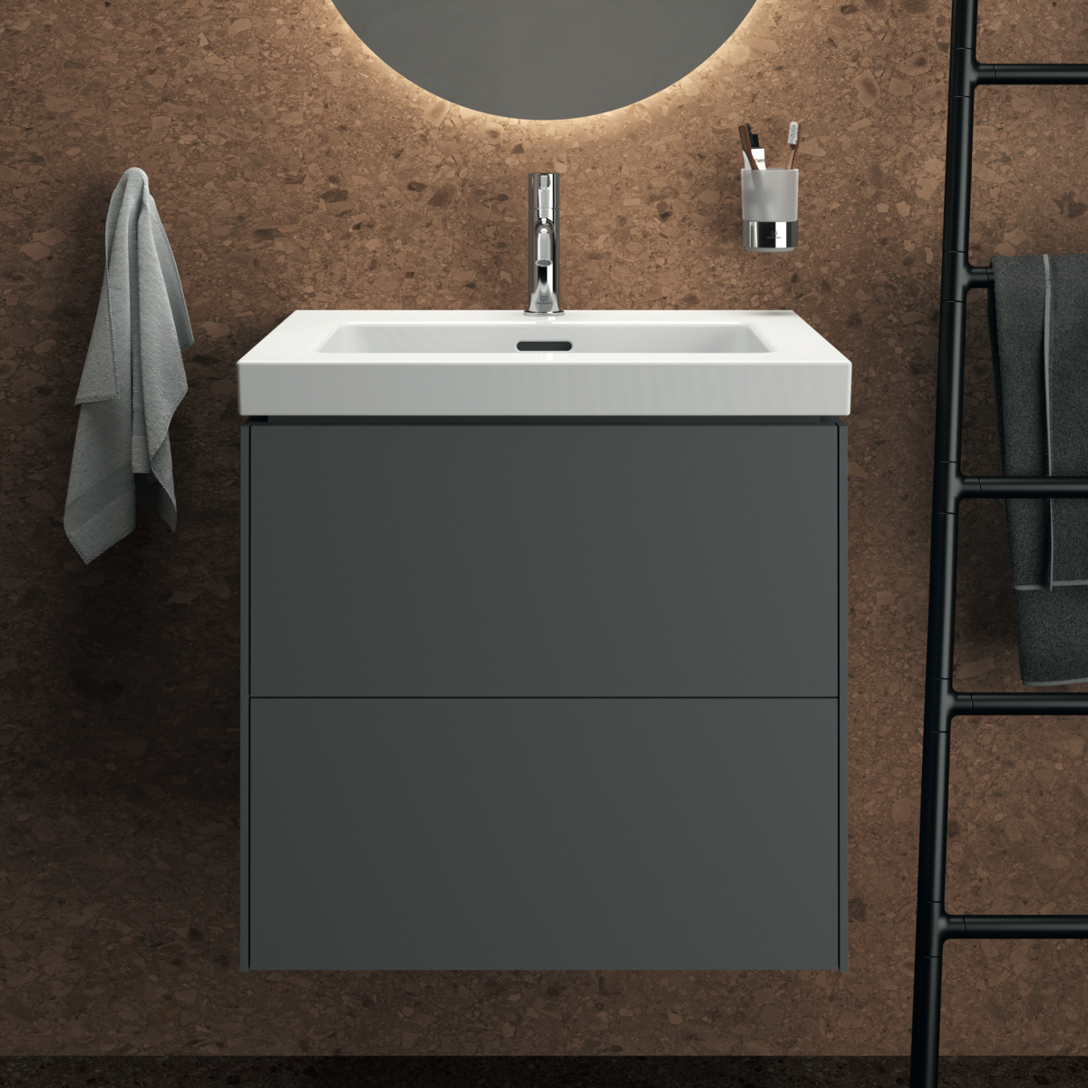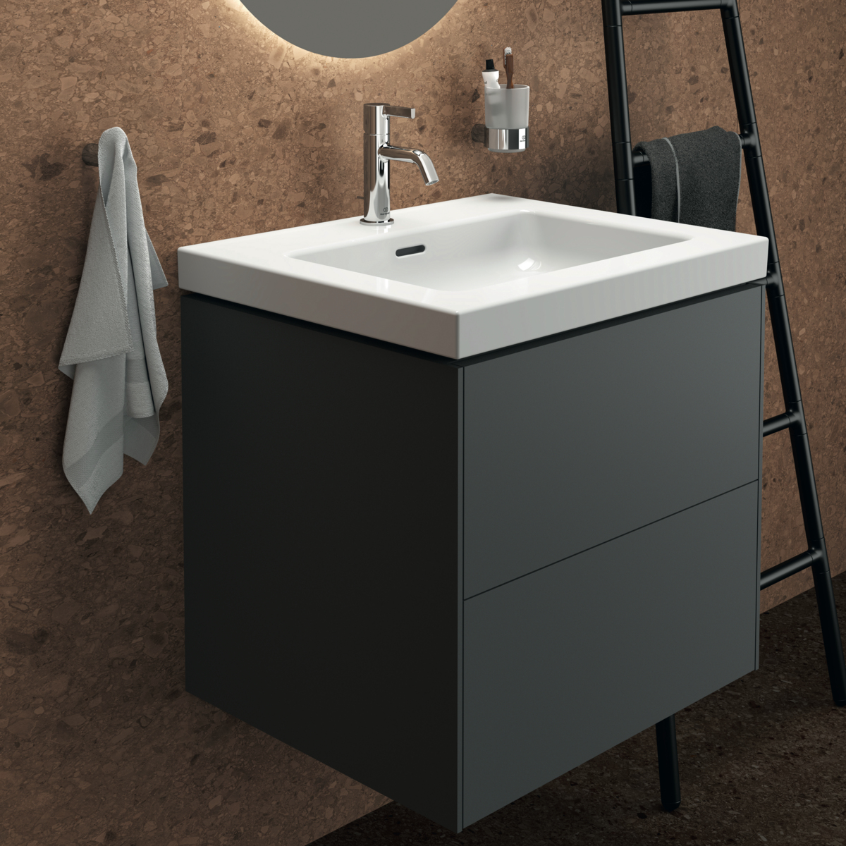 Модуль под раковину Conca 60х50,5х55 см, антрацит матовый, система push-to-open