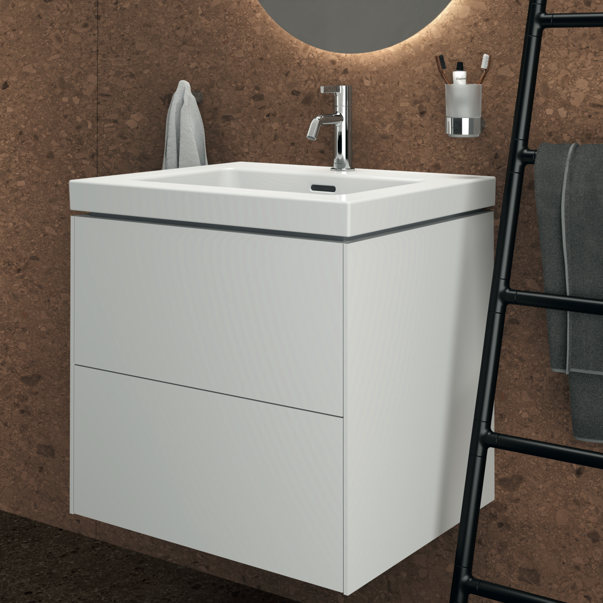 CONCA Тумба 60 см для раковины, без столешницы. Комбинированная система для удобного использования (открытие "Push to open" + закрытие "Soft close"). Внутренняя отделка ящиков цвета антрацит. 2 внешних ящика. Для монтажа с раковиной Extra Vanity 61 см или Calla Vanity 66,5 см или I.Life B Vanity 61 см