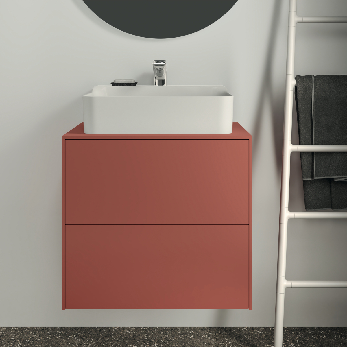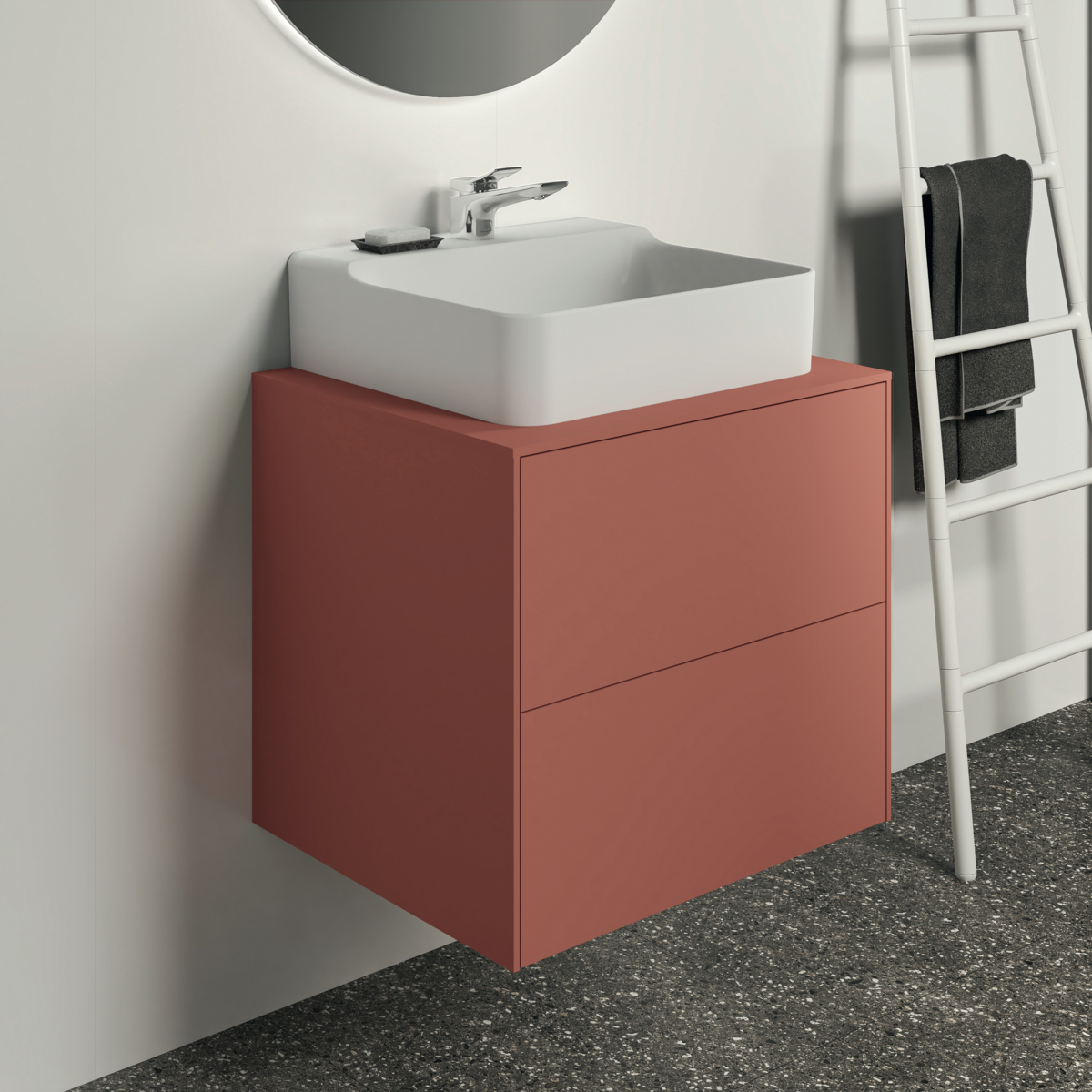 CONCA Тумба 60 см для раковины, центральный вырез в столешнице. Комбинированная система для удобного использования (открытие "Push to open" + закрытие "Soft close"). Внутренняя отделка ящиков цвета антрацит. 2 ящика. Для монтажа с раковинами Conca 40/50 см (с шлифованной нижней поверхностью) или Conca vessel 45 см или Extra 45/50 см (с шлифованной нижней поверхностью) или Extra vessel 50 см или Ipalyss vessel 40/55/60 см или Linda-X 50/60 см (с шлифованной нижней поверхностью)