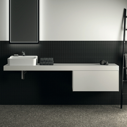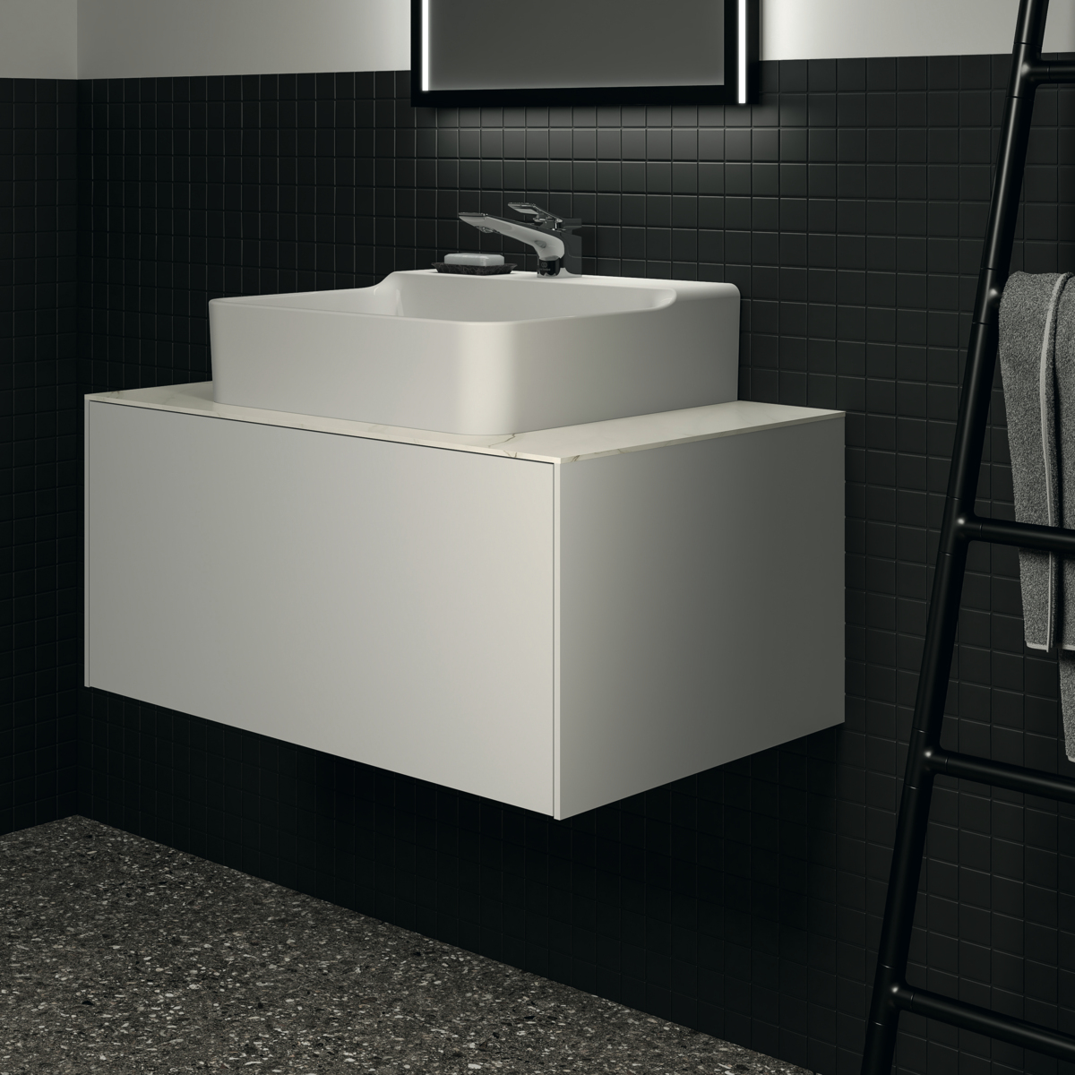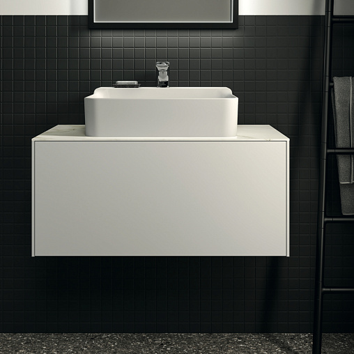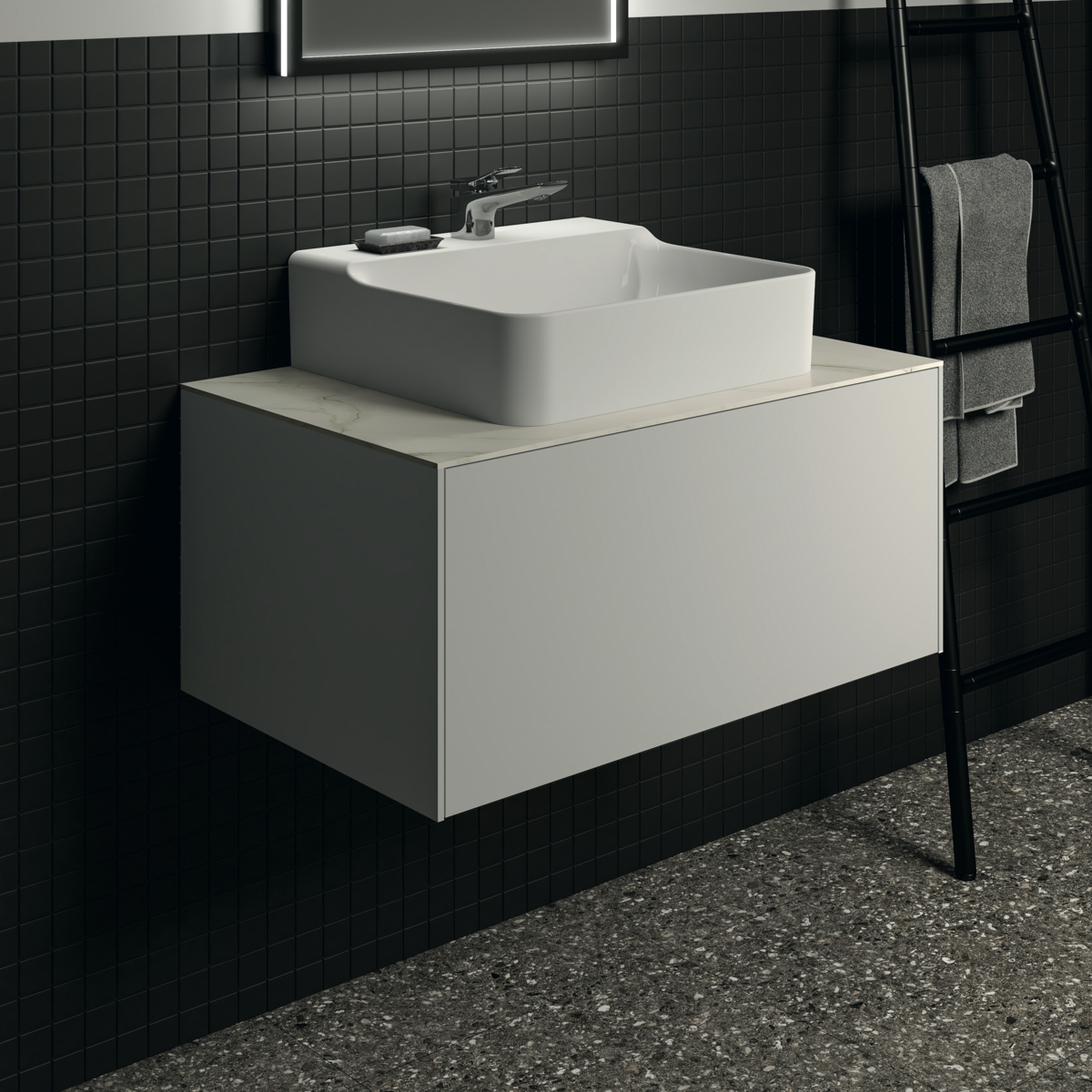 CONCA Тумба 80 см для раковины, без столешницы. Комбинированная система для удобного использования (открытие "Push to open" + закрытие "Soft close"). Внутренняя отделка ящиков цвета антрацит. 1 ящик. Для монтажа со столешницей из литьевого мрамора (без выреза / вырез под заказ) 80 см T3970.