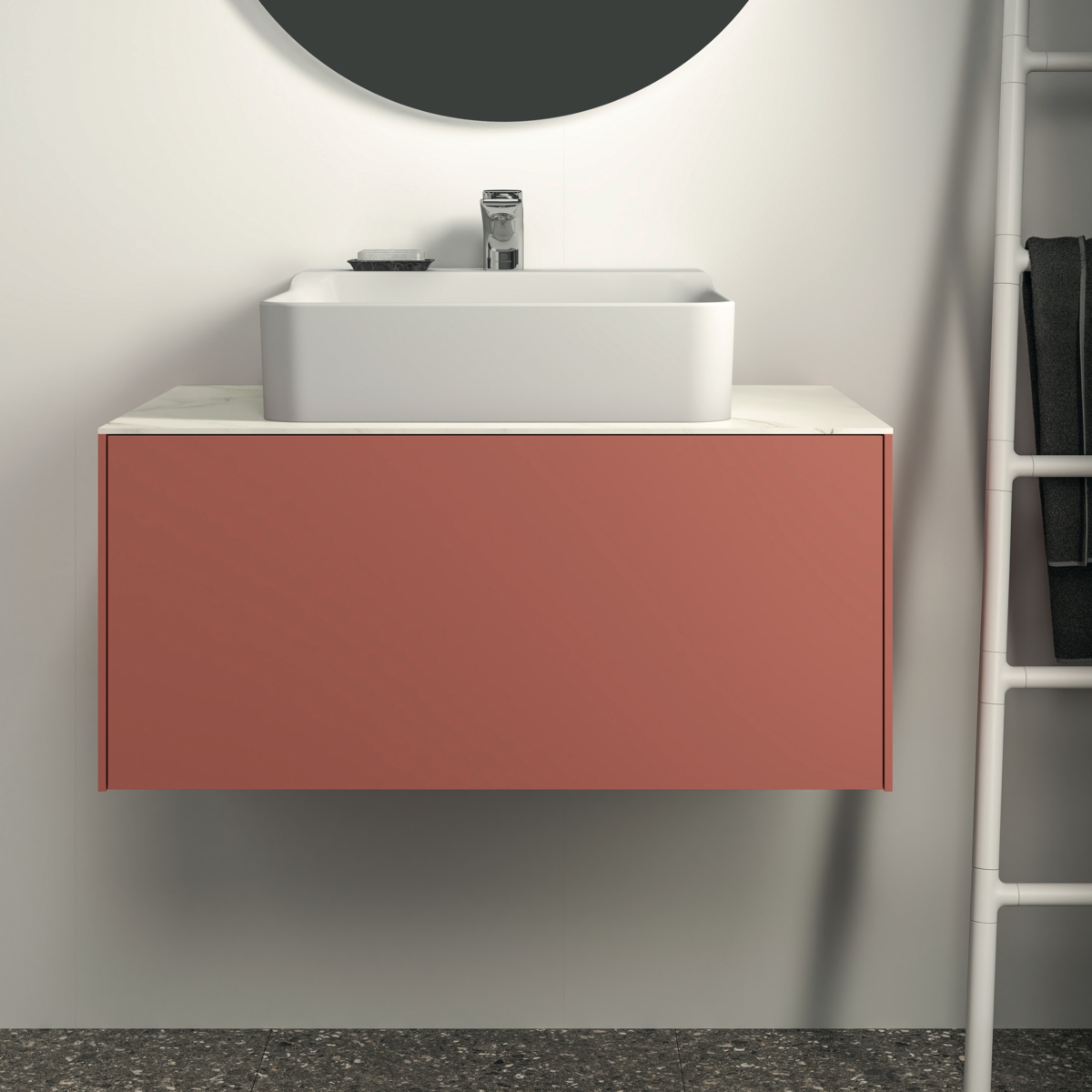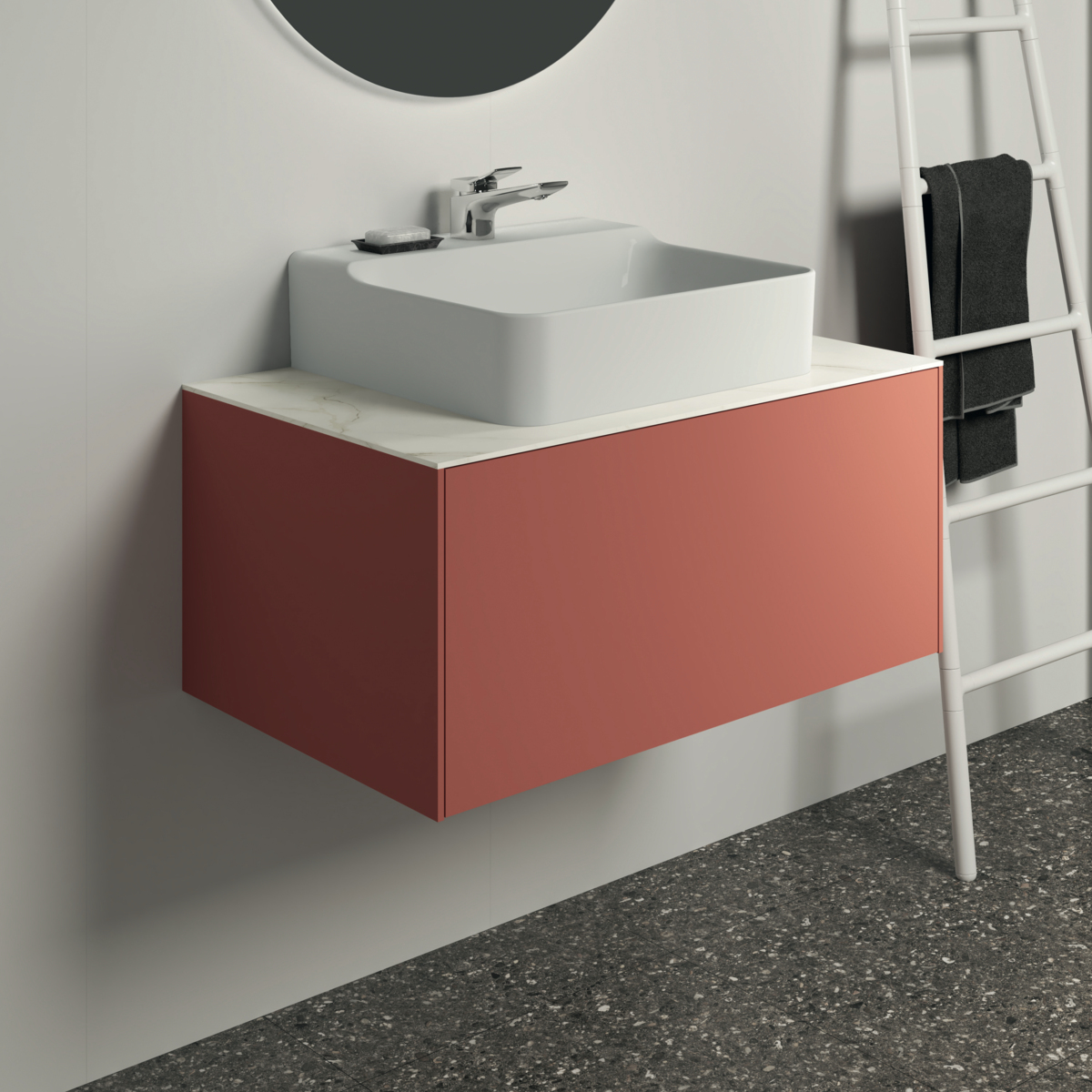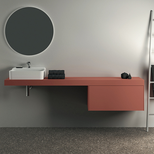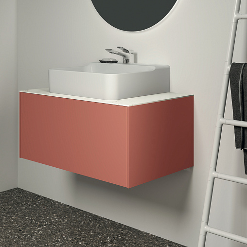 CONCA Тумба 80 см для раковины, без столешницы. Комбинированная система для удобного использования (открытие "Push to open" + закрытие "Soft close"). Внутренняя отделка ящиков цвета антрацит. 1 ящик. Для монтажа со столешницей из литьевого мрамора (без выреза / вырез под заказ) 80 см T3970.