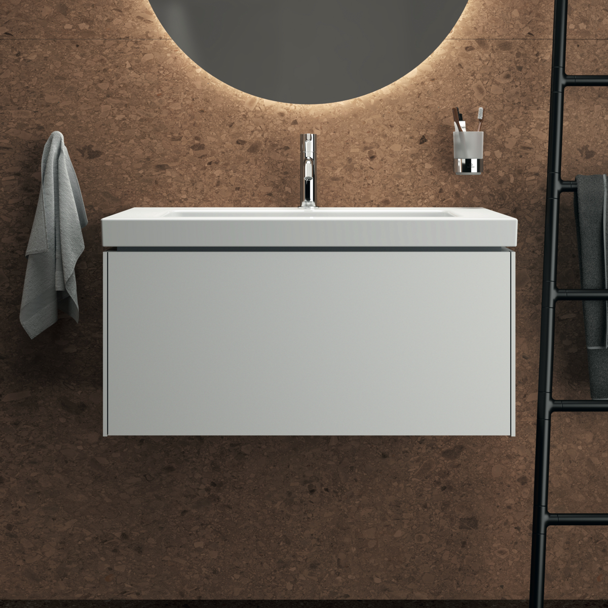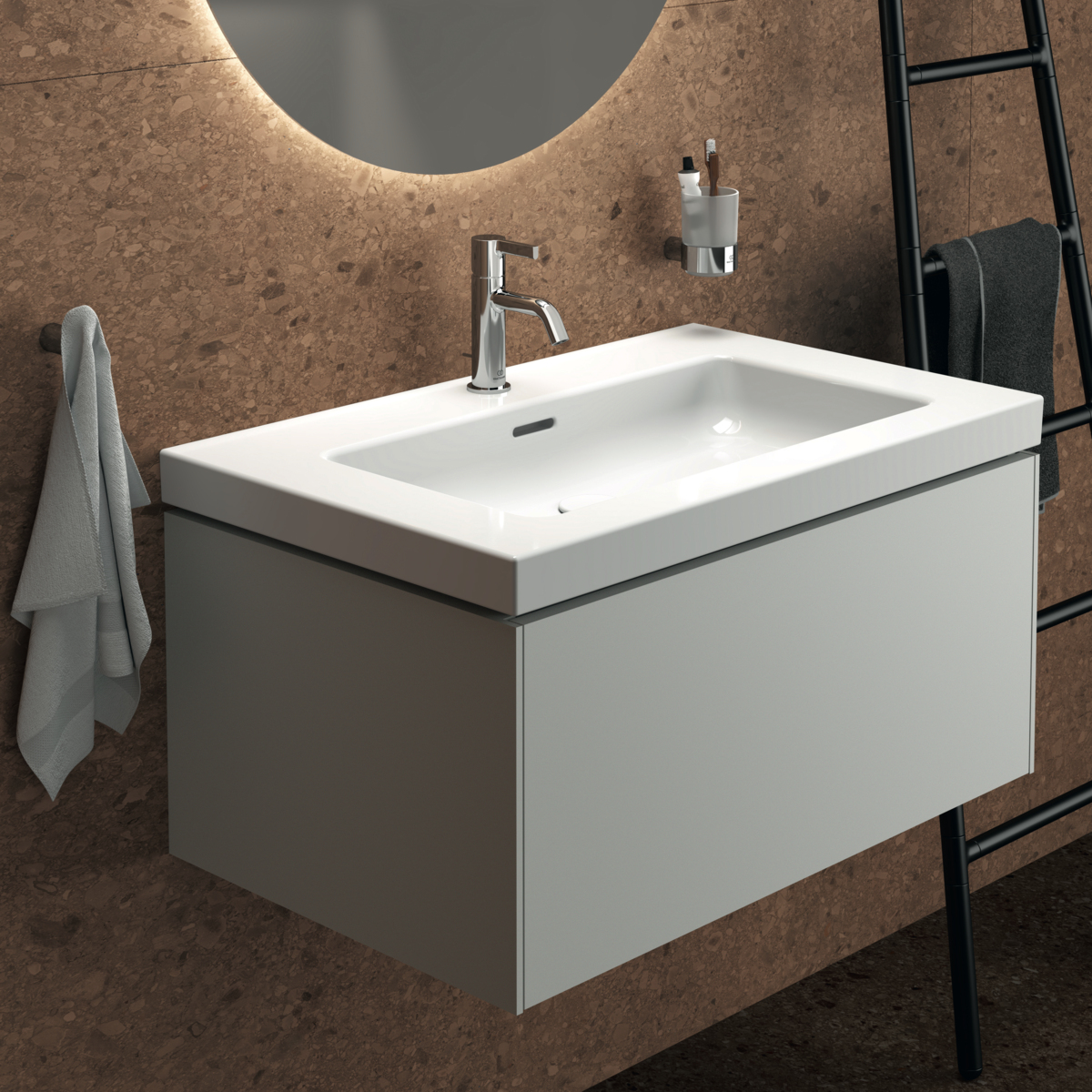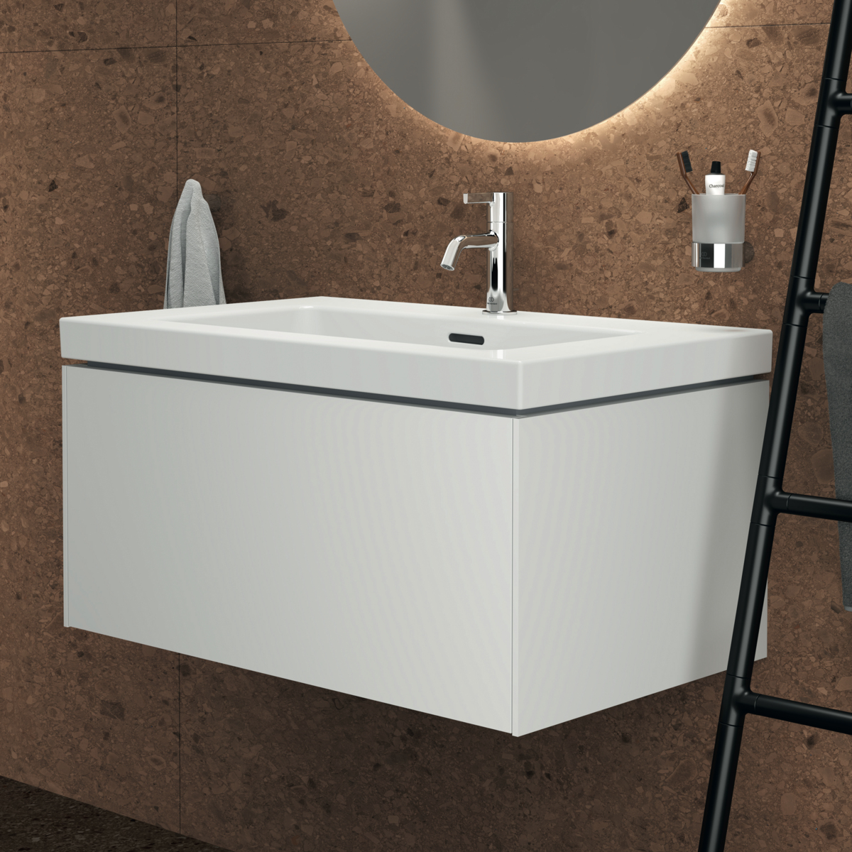 CONCA Тумба 80 см для раковины, без столешницы. Комбинированная система для удобного использования (открытие "Push to open" + закрытие "Soft close"). Внутренняя отделка ящиков цвета антрацит. 1 внешний ящик. Для монтажа с раковиной Extra Vanity 81 см или Calla Vanity 86,5 см или I.Life B Vanity 81 см