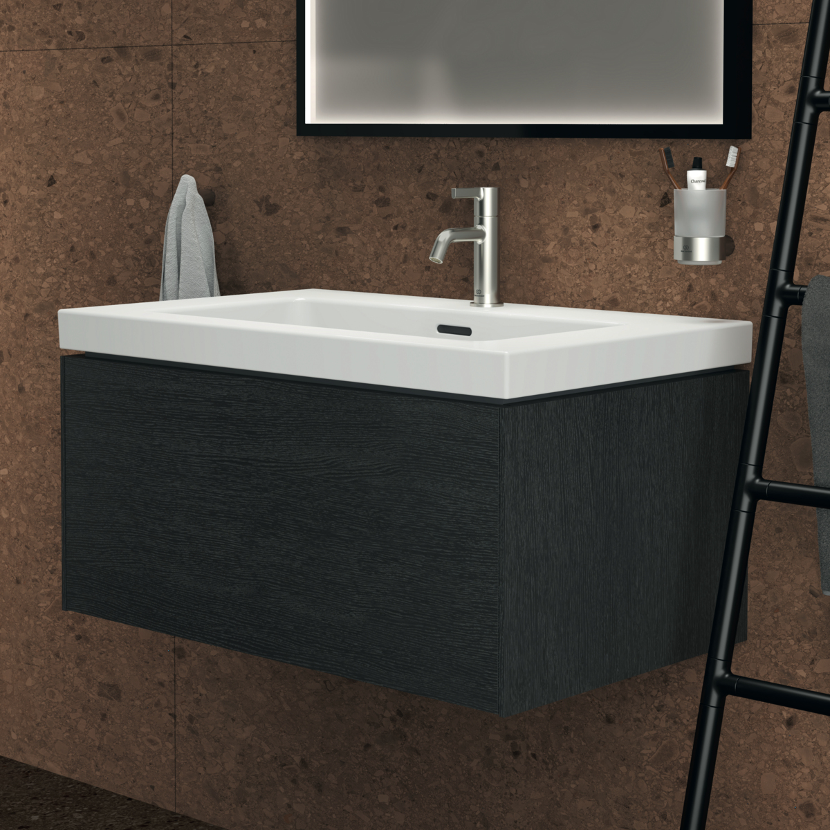 CONCA Тумба 80 см для раковины, без столешницы. Комбинированная система для удобного использования (открытие "Push to open" + закрытие "Soft close"). Внутренняя отделка ящиков цвета антрацит. 1 внешний ящик. Для монтажа с раковиной Extra Vanity 81 см или Calla Vanity 86,5 см или I.Life B Vanity 81 см