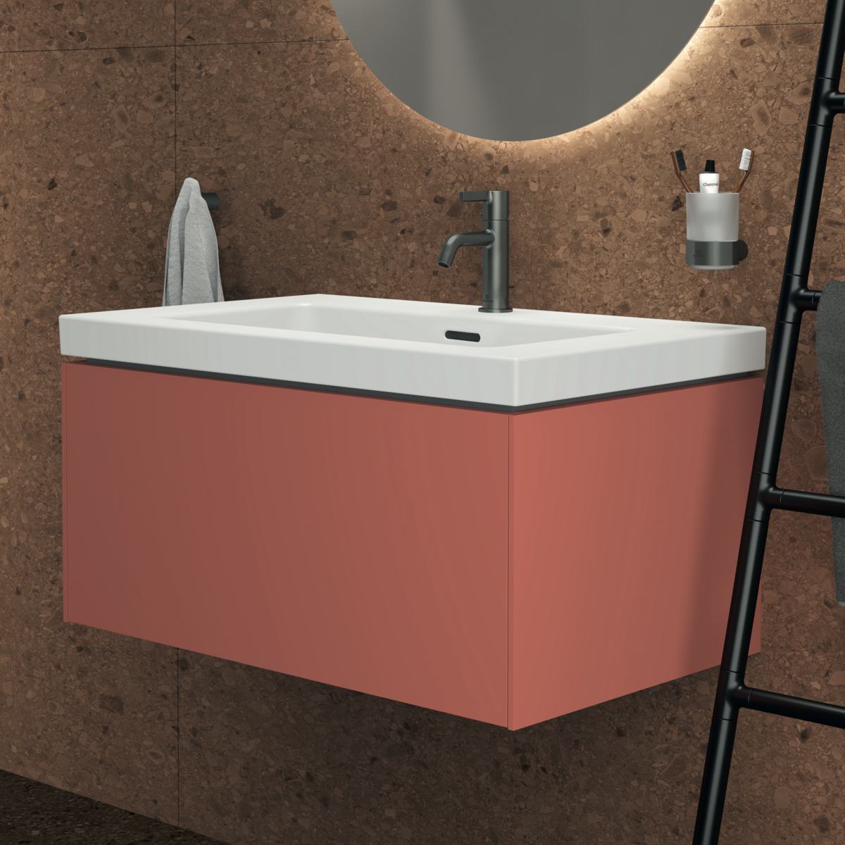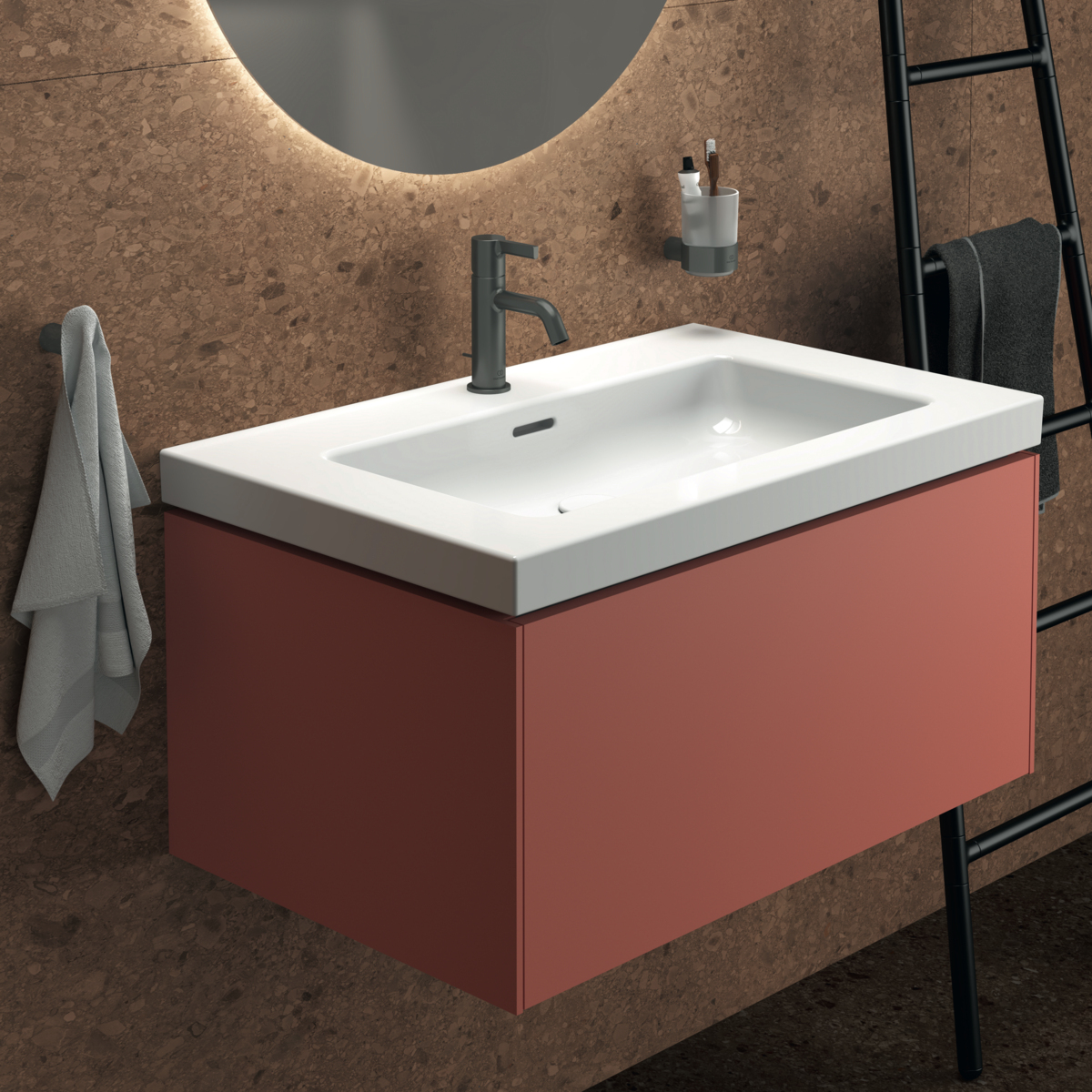 CONCA Тумба 80 см для раковины, без столешницы. Комбинированная система для удобного использования (открытие "Push to open" + закрытие "Soft close"). Внутренняя отделка ящиков цвета антрацит. 1 внешний ящик. Для монтажа с раковиной Extra Vanity 81 см или Calla Vanity 86,5 см или I.Life B Vanity 81 см