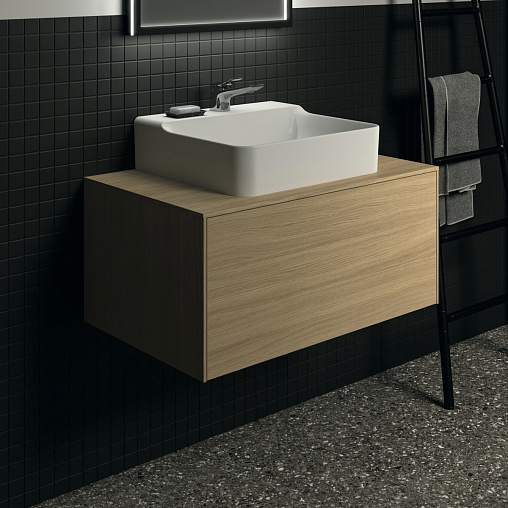 CONCA Тумба 80 см для раковины, центральный вырез в столешнице. Комбинированная система для удобного использования (открытие "Push to open" + закрытие "Soft close"). Внутренняя отделка ящиков цвета антрацит. 1 ящик. Рекомендуется сифон Space Saving EE23033967 (заказывается дополнительно). Для монтажа с раковинами Conca 40/50/60 см (с шлифованной нижней поверхностью) или Conca vessel 45/60 см или Extra 45/50/60/70 см (с шлифованной нижней поверхностью) или Extra vessel 50/60 см или Ipalyss vessel 40/55/60/65/80 см или Linda-X 50/60/75 см (с шлифованной нижней поверхностью)