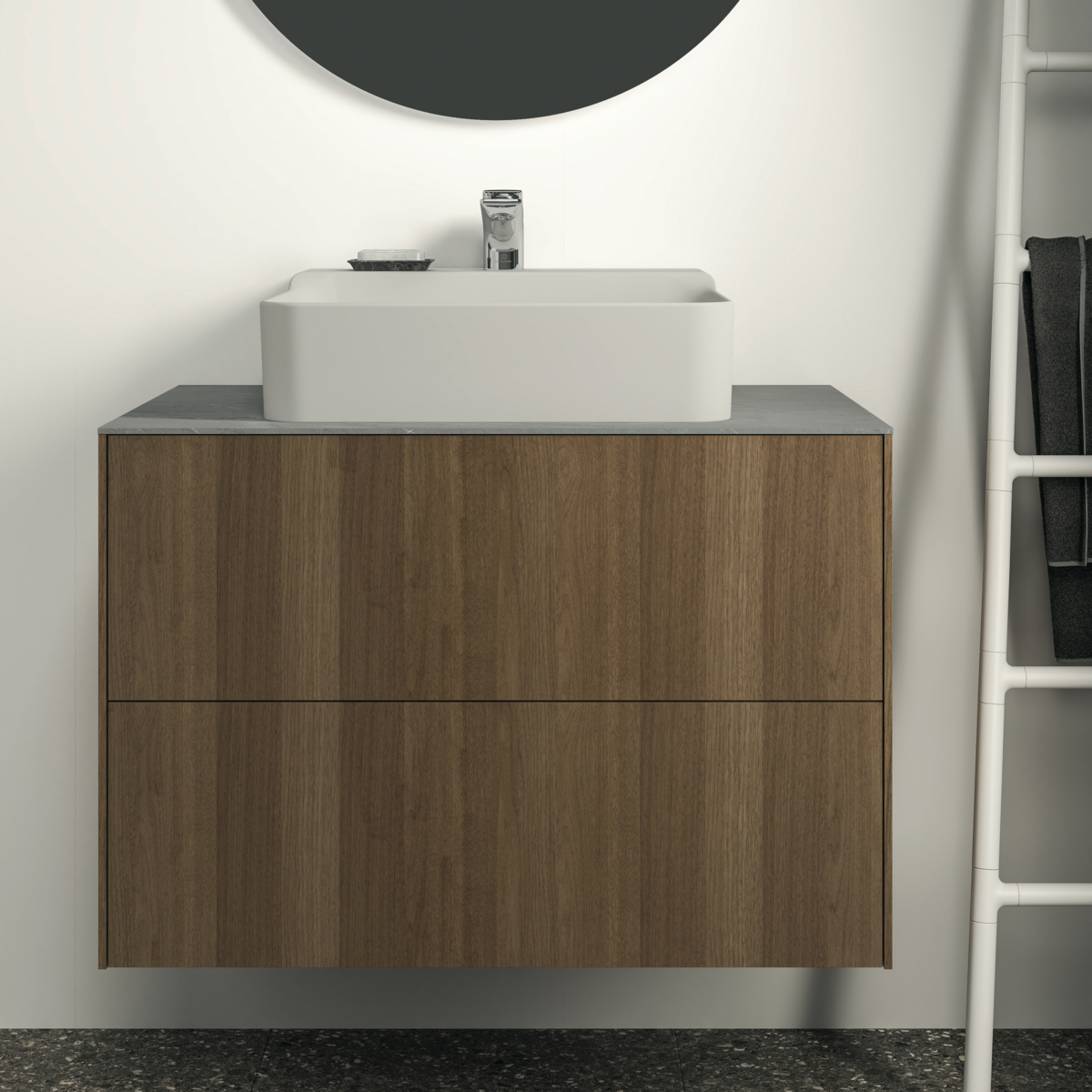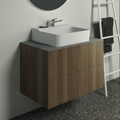 CONCA Тумба 80 см для раковины, без столешницы. Комбинированная система для удобного использования (открытие "Push to open" + закрытие "Soft close"). Внутренняя отделка ящиков цвета антрацит. 2 ящика. Для монтажа со столешницей из литьевого мрамора (без выреза / вырез под заказ) 80 см T3970.