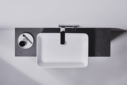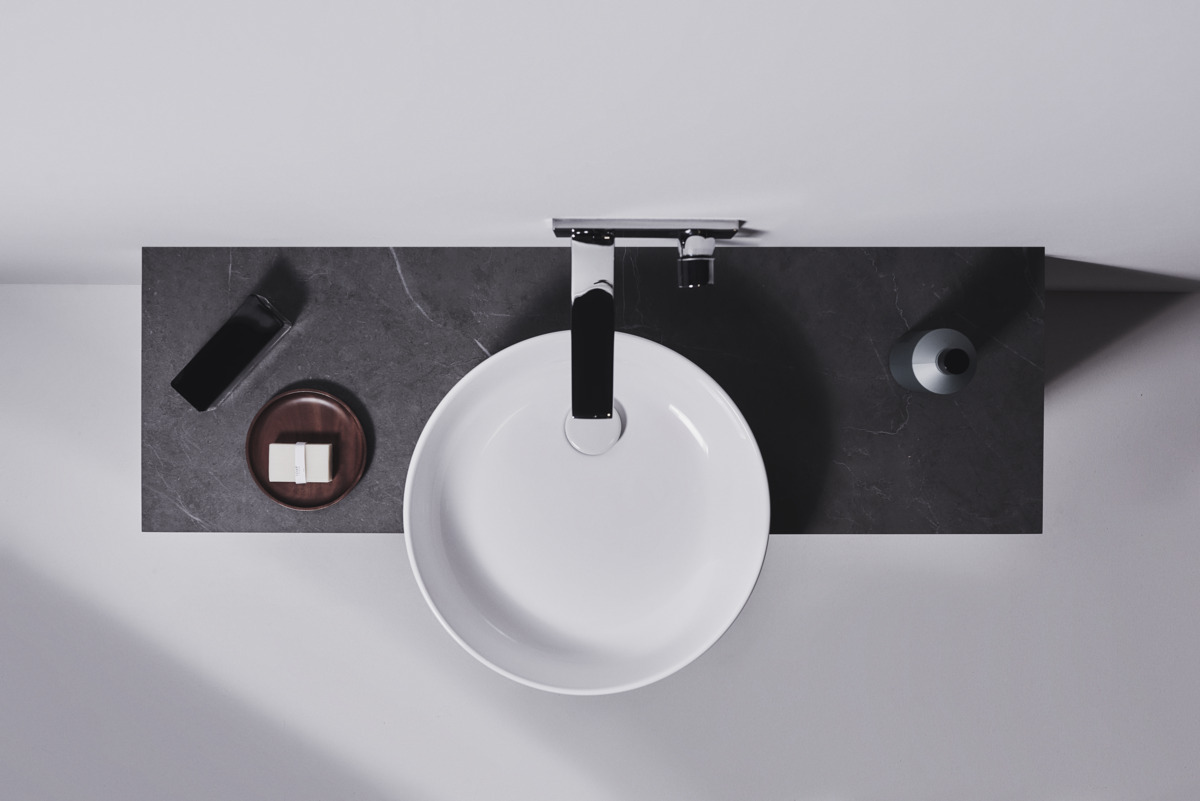 CONCA Столешница 120 см (литьевой мрамор), для монтажа с подстольем для умывальника, узкая проекция 37 см. Без выреза / вырез под заказ. Заказ столешницы из литьевого мрамора с вырезом должен сопровождаться заполнением формы (Bespoke order form), т.к. вырез готовится в зависимости от выбранного умывальника