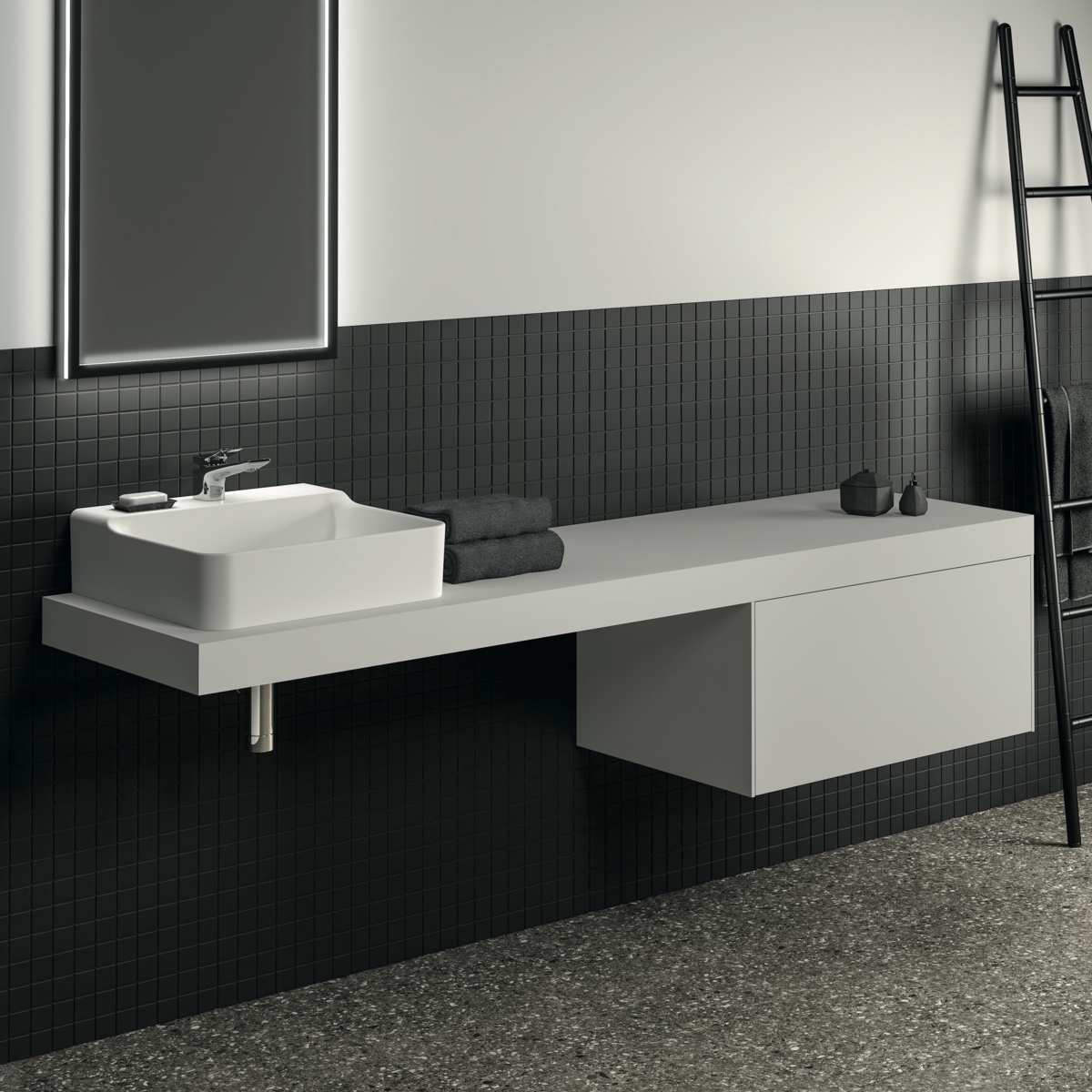 CONCA Консольная полка 200 см, проекция 50,5 см, без выреза (отверстие вырезается при помощи шаблона, входящего в комплект умывальника), с крепежом. Настенный монтаж при помощи кронштейнов (заказываются дополнительно)