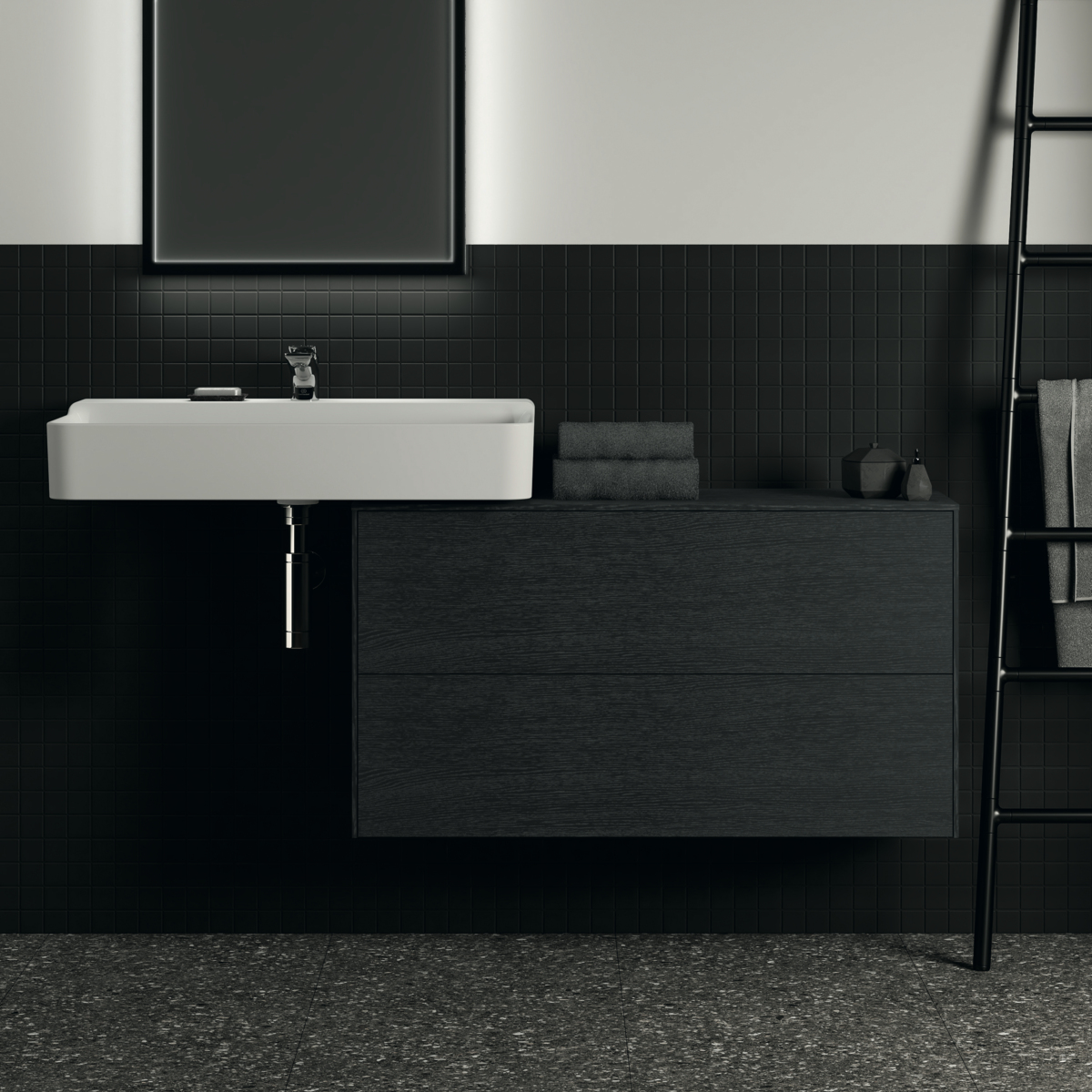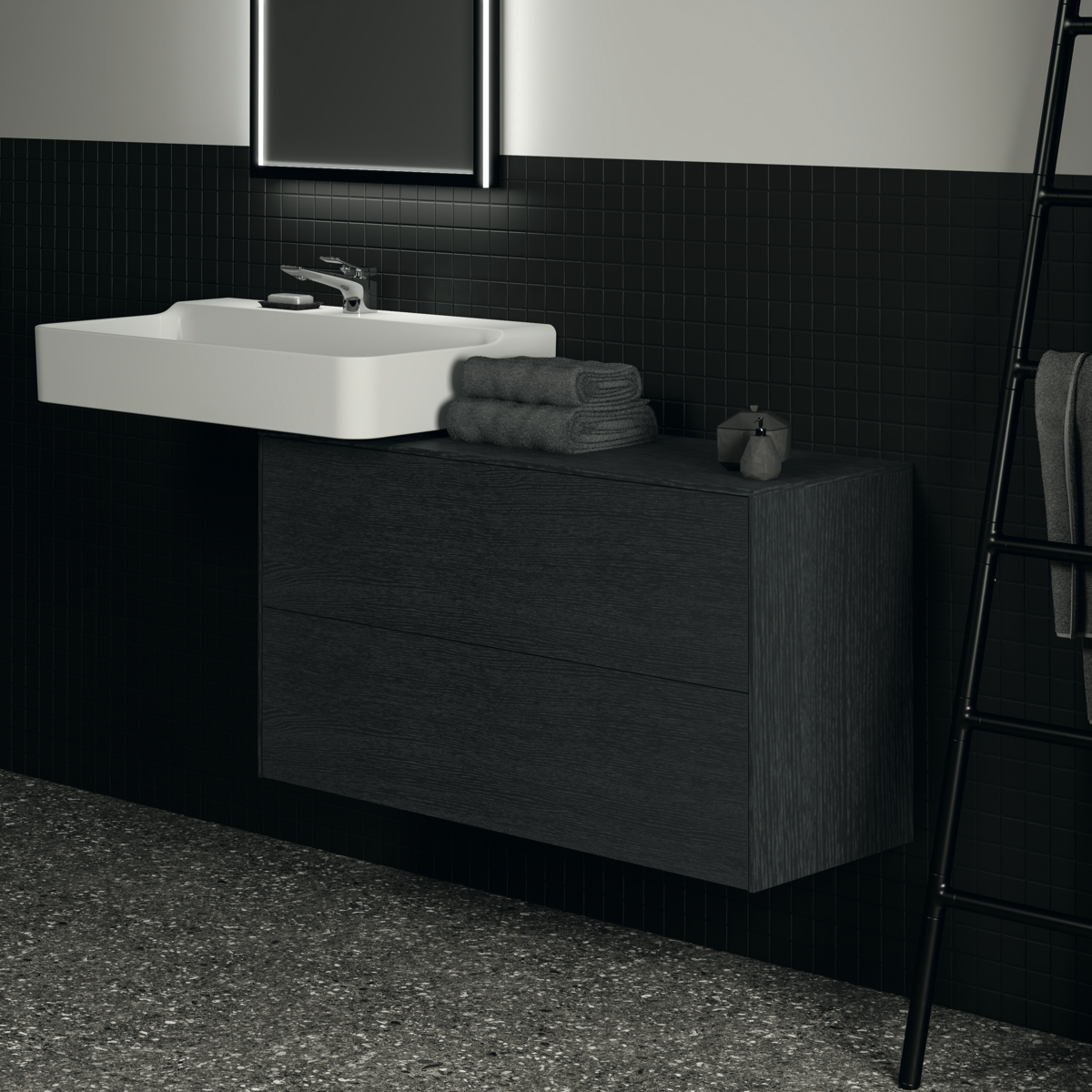 CONCA Тумба 100 см для раковины, узкая проекция 37 см, без выреза в столешнице. Комбинированная система для удобного использования (открытие "Push to open" + закрытие "Soft close"). Внутренняя отделка ящиков цвета антрацит. 2 внешних ящика. Для монтажа с раковинами Conca 40/50/60/80 см (с шлифованной нижней поверхностью) или Conca vessel 45/60 см или Extra 45/50/60/70/80 см (с шлифованной нижней поверхностью) или Extra vessel 50/60 см или Ipalyss vessel 40/55/60/65/80 см или Linda-X 50/60/75 см (с шлифованной нижней поверхностью) или Linda-X vessel 45/55 см