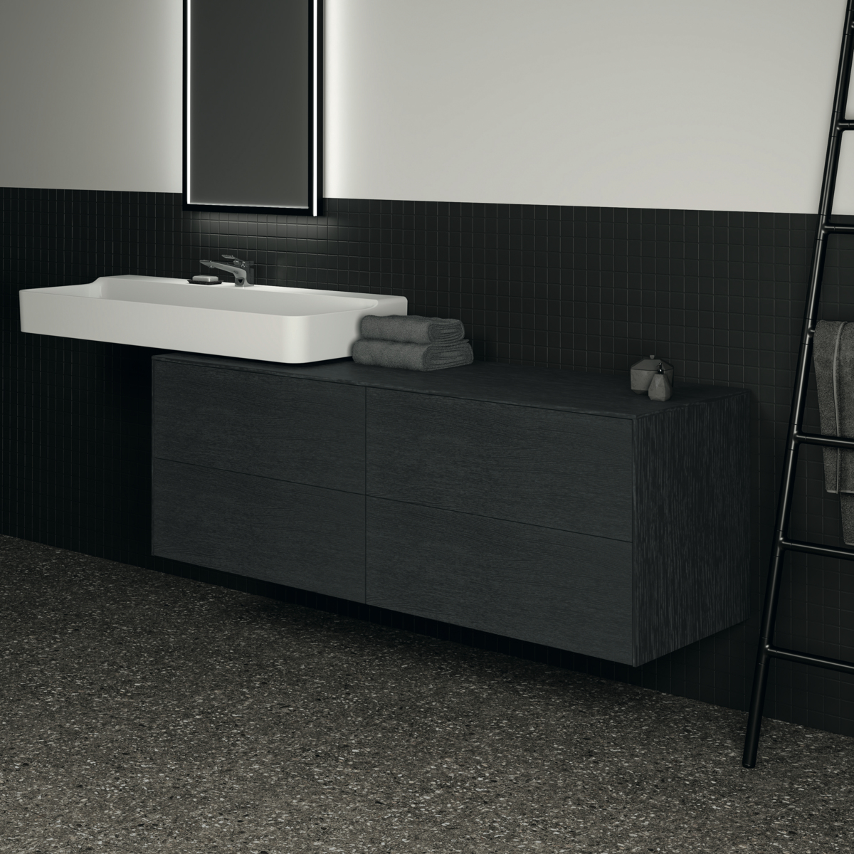 CONCA Тумба 160 см для раковины, без выреза в столешнице. Комбинированная система для удобного использования (открытие "Push to open" + закрытие "Soft close"). Внутренняя отделка ящиков цвета антрацит. 4 ящика. Для монтажа с раковинами Conca 40/50/60/80 см (с шлифованной нижней поверхностью) или Conca vessel 45/60 см или Extra 45/50/60/70/80 см (с шлифованной нижней поверхностью) или Extra vessel 50/60 см или Ipalyss vessel 40/55/60/65/80 см или Linda-X 50/60/75 см (с шлифованной нижней поверхностью) или Linda-X vessel 45/55 см
