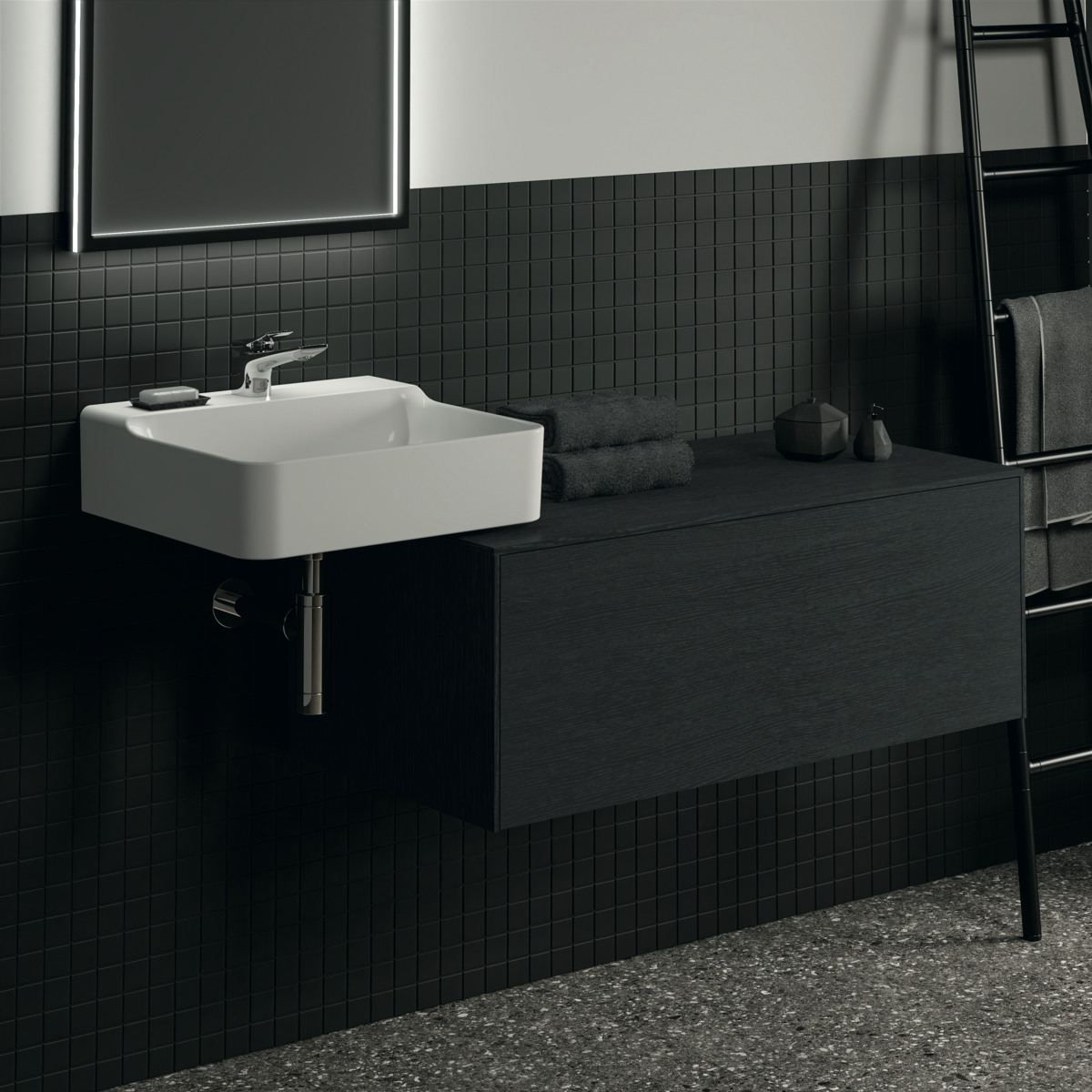 CONCA Тумба 100 см для раковины, без выреза в столешнице. Комбинированная система для удобного использования (открытие "Push to open" + закрытие "Soft close"). Внутренняя отделка ящиков цвета антрацит. 1 ящик. Для монтажа с раковинами Conca 40/50/60/80 см (с шлифованной нижней поверхностью) или Conca vessel 45/60 см или Extra 45/50/60/70/80 см (с шлифованной нижней поверхностью) или Extra vessel 50/60 см или Ipalyss vessel 40/55/60/65/80 см или Linda-X 50/60/75 см (с шлифованной нижней поверхностью) или Linda-X vessel 45/55 см