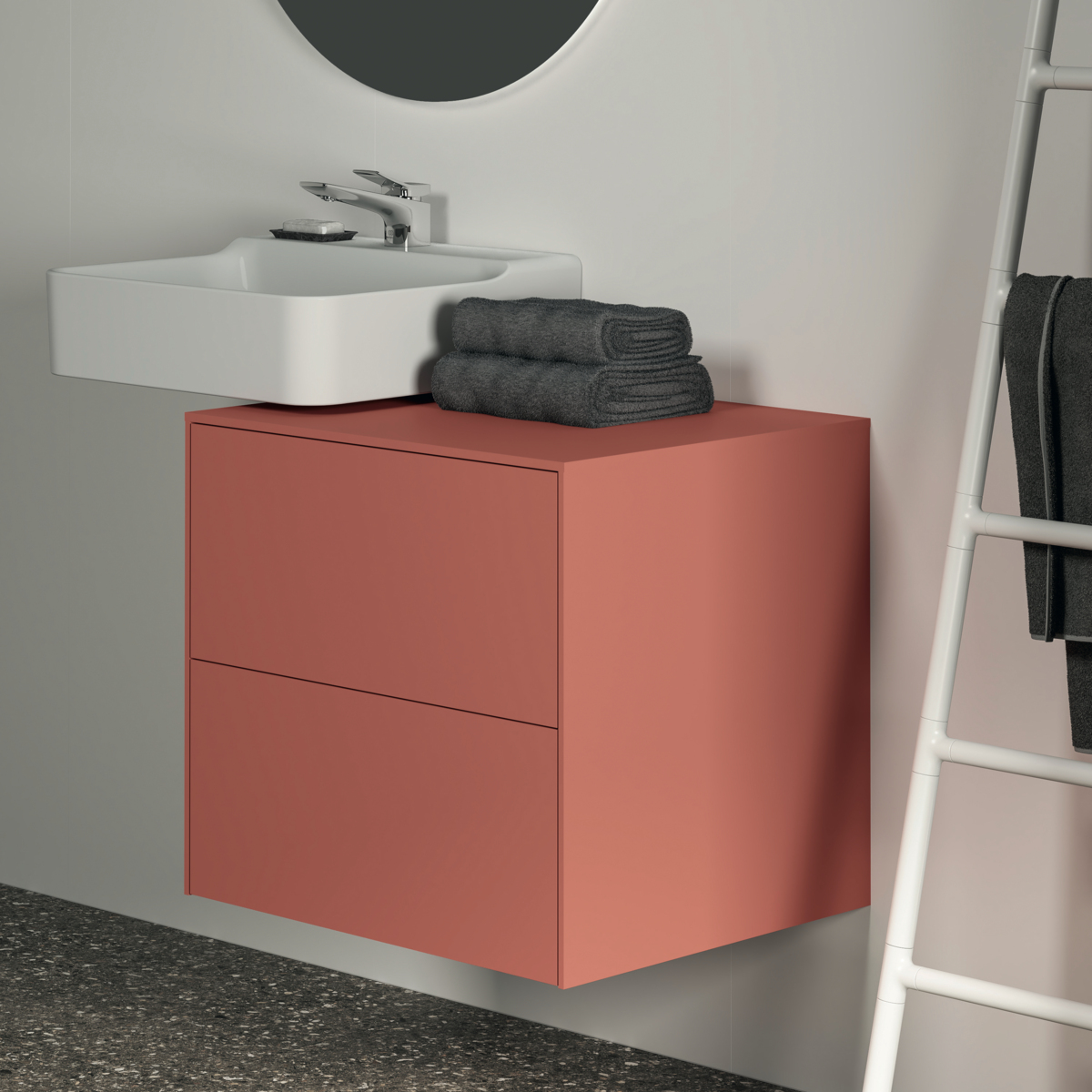 CONCA Тумба 60 см для раковины, без выреза в столешнице. Комбинированная система для удобного использования (открытие "Push to open" + закрытие "Soft close"). Внутренняя отделка ящиков цвета антрацит. 2 ящика. Для монтажа с раковинами Conca 40/50 см (с шлифованной нижней поверхностью) или Conca vessel 45 см или Extra 45/50 см (с шлифованной нижней поверхностью) или Extra vessel 50 см или Ipalyss vessel 40/55/60 см или Linda-X 50/60 см (с шлифованной нижней поверхностью) или Linda-X vessel 45/55 см