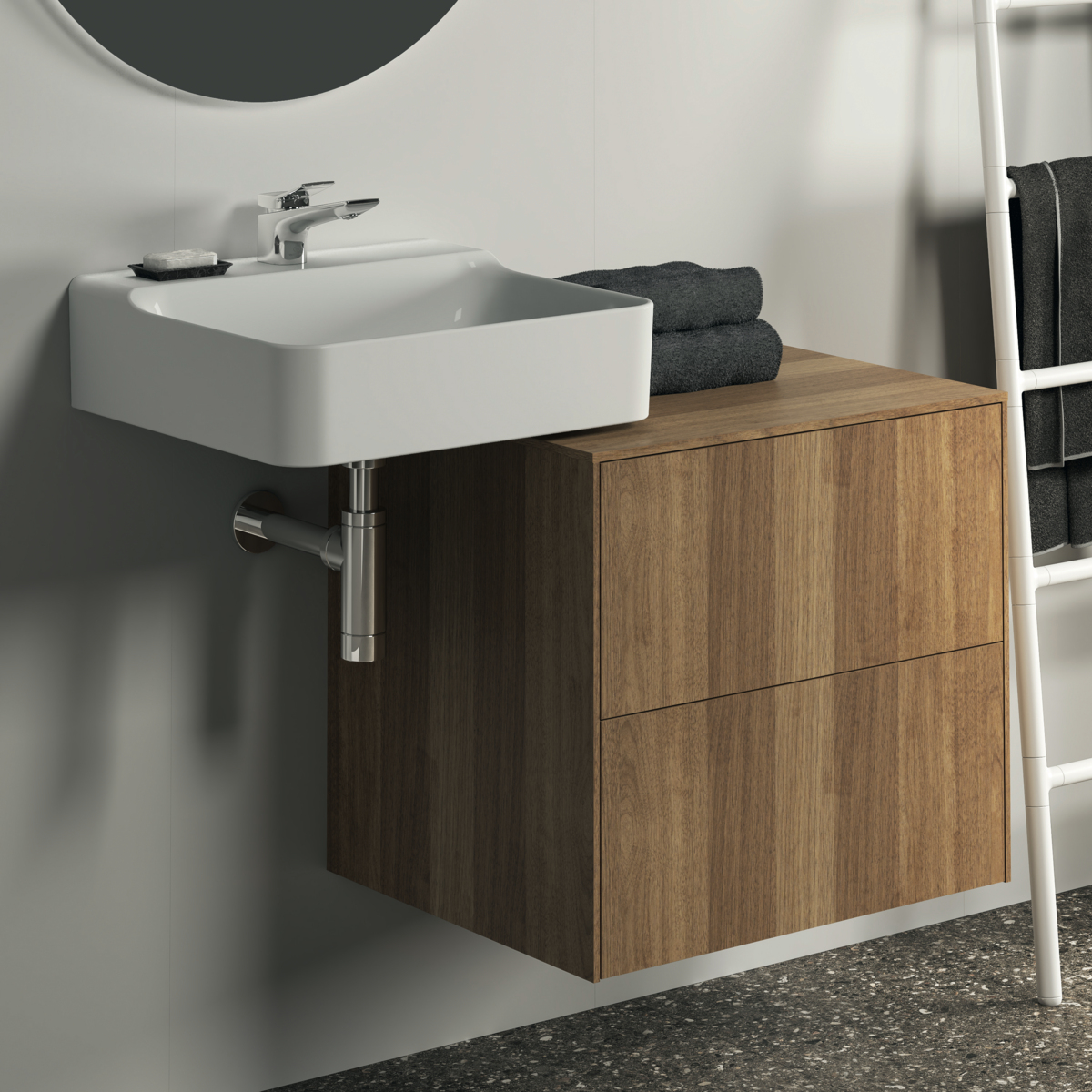 CONCA Тумба 60 см для раковины, без выреза в столешнице. Комбинированная система для удобного использования (открытие "Push to open" + закрытие "Soft close"). Внутренняя отделка ящиков цвета антрацит. 2 ящика. Для монтажа с раковинами Conca 40/50 см (с шлифованной нижней поверхностью) или Conca vessel 45 см или Extra 45/50 см (с шлифованной нижней поверхностью) или Extra vessel 50 см или Ipalyss vessel 40/55/60 см или Linda-X 50/60 см (с шлифованной нижней поверхностью) или Linda-X vessel 45/55 см