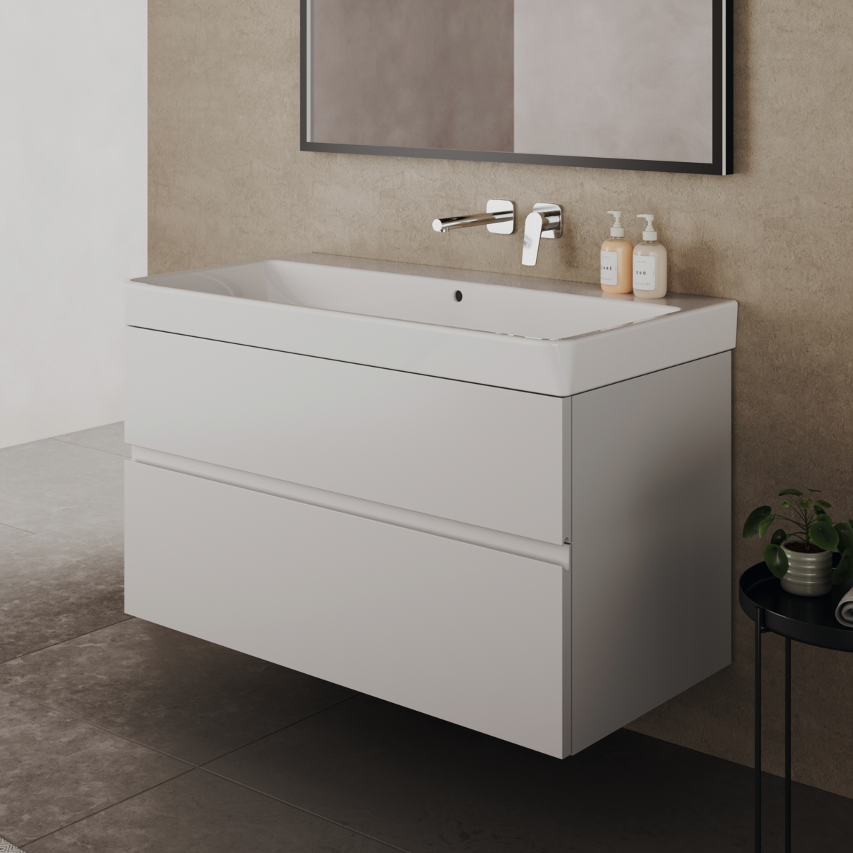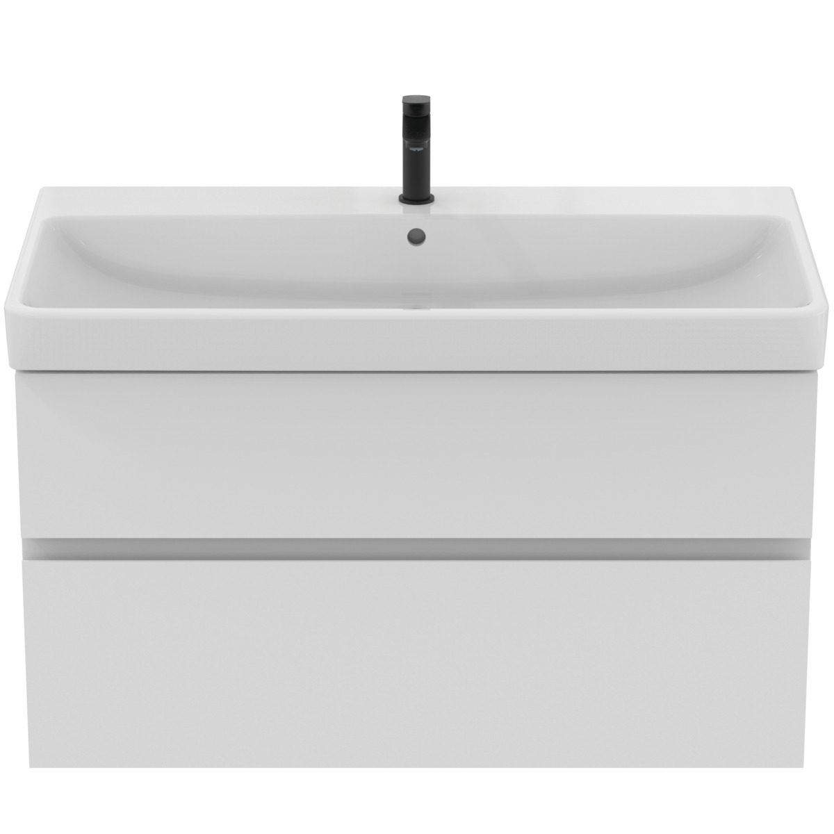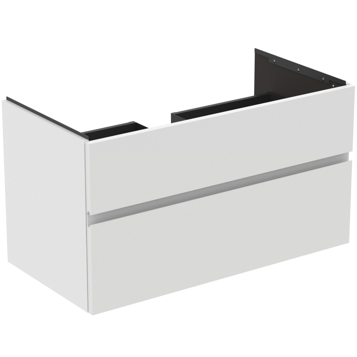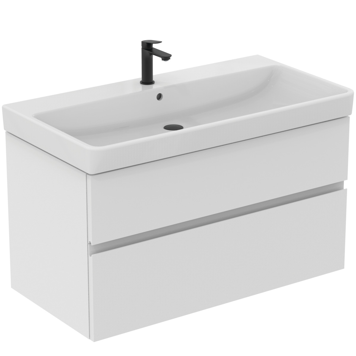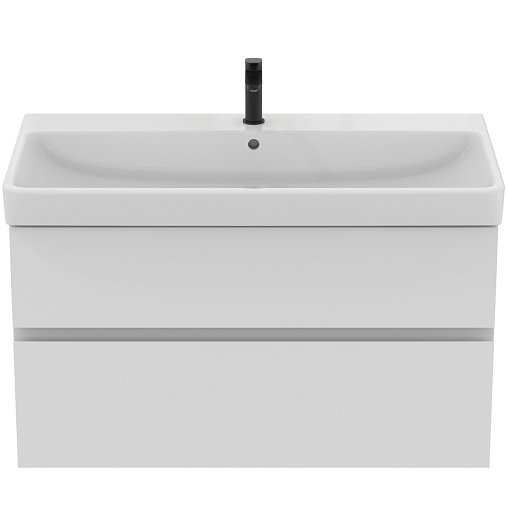FINESSE Тумба для раковины 100х50 см для подвесного монтажа, 2 ящика, система плавного закрытия. Конструкция без ручек - паз под верхним и над нижним выдвижными ящиками для легкого открывания. C крепежом. Рекомендуется сифон Space Saving EE23033967 (заказывается дополнительно). Для монтажа с раковинами EXTRA Vanity 101 см T4366, T4369, T4368 или SOLOS Vanity 101,5 см T5370, T5369, T5561 или La Dolce Vita Vanity 106 см E2631, E2702, E2677 или i.Life B Vanity 121 см T4603