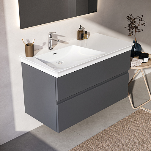 Модуль под раковину Finesse 100х50,5х55 см, левосторонний, антрацит матовый (лак)