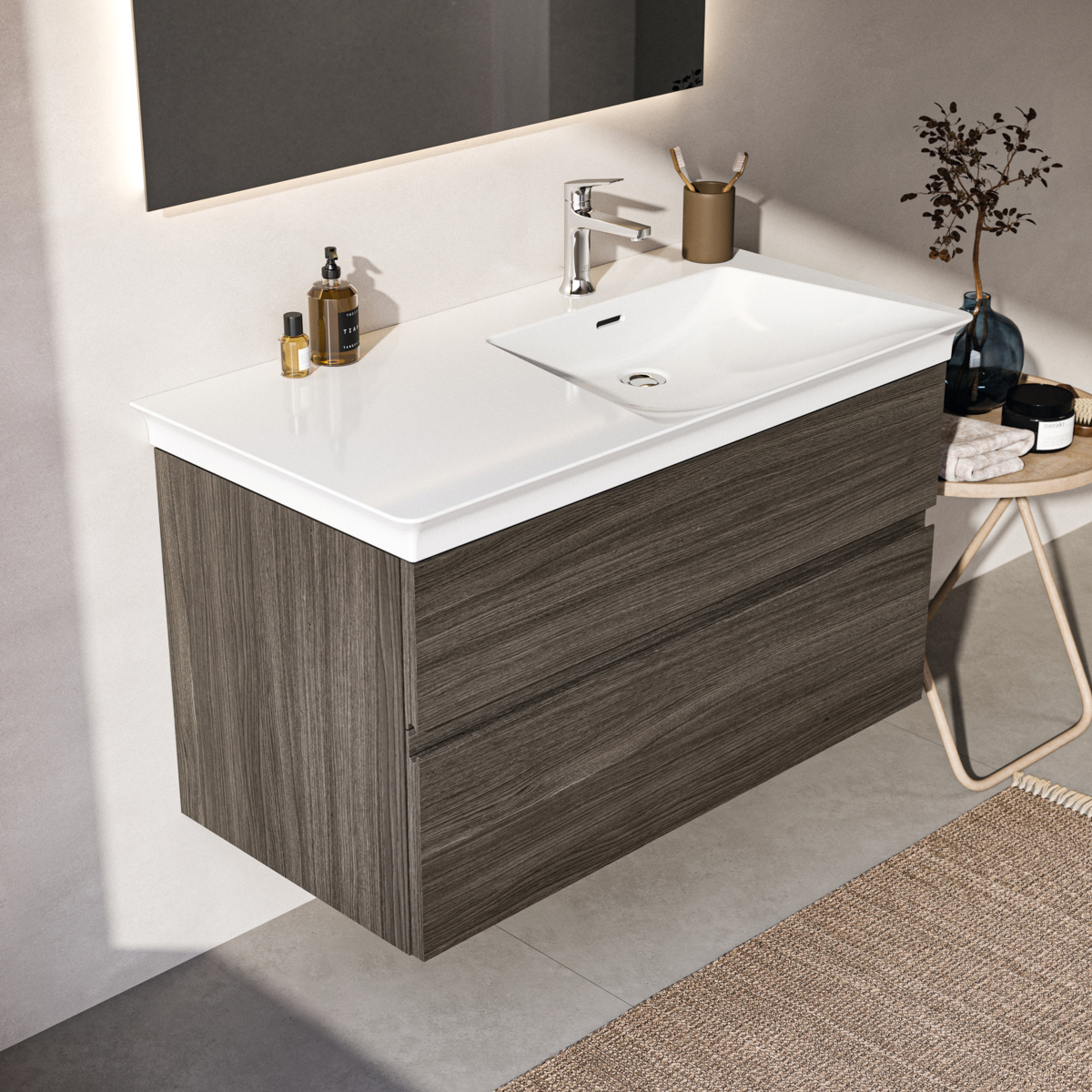 Модуль под раковину Finesse 100х50,5х55 см, правосторонний, темный вяз (натуральный шпон)