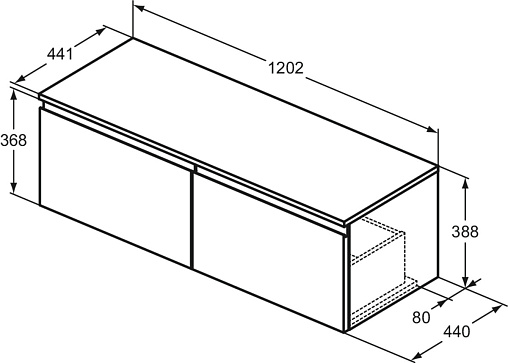 FINESSE Тумба со столешницей 120х44 см для подвесного монтажа, 2 ящика, система плавного закрытия. Конструкция без ручек - паз над ящиками для легкого открывания. C крепежом. Рекомендуется сифон Space Saving EE23033967 (заказывается дополнительно). Для монтажа с раковинами Linda-X 60 см T4988, T4990, T4989 / Linda-X 50 см T4985, T4987, T4986 / Conca 60 см T3818, T3822, T3823, T3825, T3819, T3824 / Conca 50 см T3812, T3814, T3815, T3817, T3813, T3816 / Conca 40 см T3876, T3877, T3878, T3879 / Extra 60 см T3889, T3891, T3890 / Extra 50 см T3884, T3886, T3885 / Extra 45 см T3917, T3918 / Extra 45 см T3920, T3921 / Extra 45 см T3923, T3924 / Strada II 60 см T3644 / Strada II 50 см T3643 / Linda-X T4399, T4400, T4401, T4402 / Ipalyss E1396, E1397, E1398, E1413 / Conca T3696, T3698 / Extra T3740, T3741 / La Dolce Vita E2717 / Strada II T2998, T2999, T2964, T2965, T2966, T2967, T2981, T3604, T2929, T2959, T2961, T2962, T2963 / Strada K0776, K0781, K0816, K0784, K0795 / Connect Air K0833, E0348 / I.Life B T5092, T5091, T5087