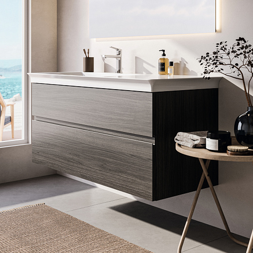 FINESSE Асимметричная тумба для раковины 120х50 см для подвесного монтажа, левая версия, 2 ящика, система плавного закрытия. Конструкция без ручек - паз под верхним и над нижним выдвижными ящиками для легкого открывания. C крепежом. Рекомендуется сифон Space Saving EE23033967 (заказывается дополнительно). Для монтажа с раковинами La Dolce Vita Asymmetrical Left 126 см E2632, E2706, E2696