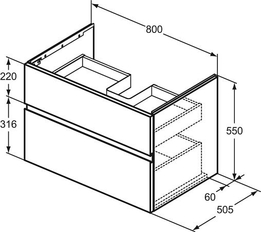 FINESSE Тумба для раковины 80х50 см для подвесного монтажа, 2 ящика, система плавного закрытия. Конструкция без ручек - паз под верхним и над нижним выдвижными ящиками для легкого открывания. C крепежом. Рекомендуется сифон Space Saving EE23033967 (заказывается дополнительно). Для монтажа с раковинами EXTRA Vanity 81 см T4362, T4365, T4364 или CALLA Vanity 86,5 см E2241, E2242, E2243 или i.Life B Vanity 81 см T4604