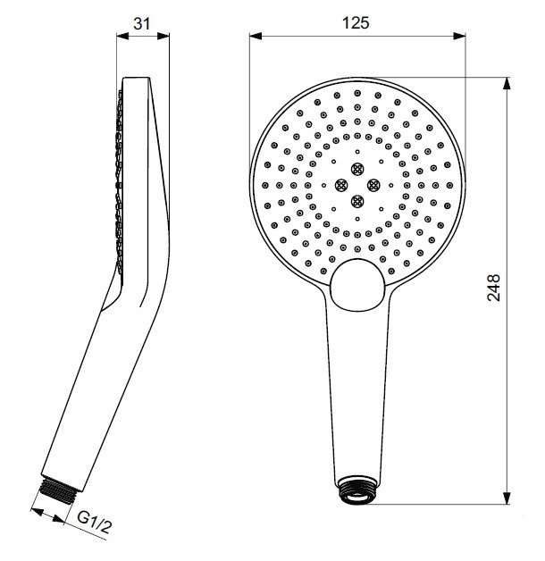 Душевая лейка IdealRain 125 мм, 3 режима, без шланга