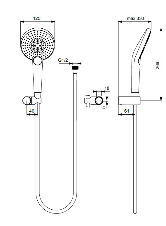 IdealRain, душевая лейка, 3 режима, шланг в комплекте, 125 мм, арт. B1765AA, Ideal Standard
