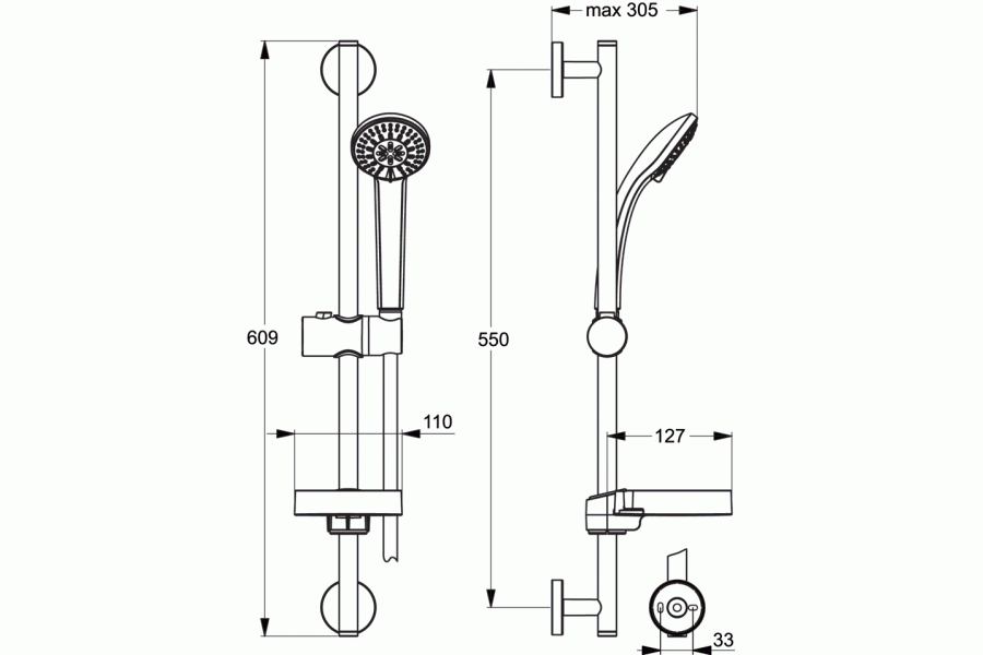 Ideaduo, душевой гарнитур, 3 режима, для встр. смесителя, арт. B9503AA, Ideal Standard