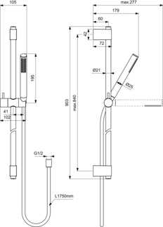 IdealRain, душевой гарнитур, 1 режим ручной лейки, графит, арт. A7617A5, Ideal Standard