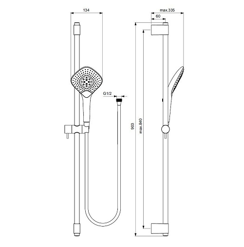 Душевой гарнитур IdealRain штанга 90см, хром, 3 режима