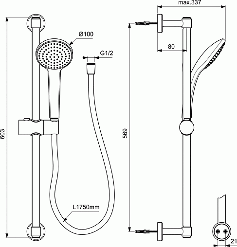 IdealRain Soft, душевой гарнитур, 1 режим, чёрный цвет, матовый, арт. BD142XG, Ideal Standard