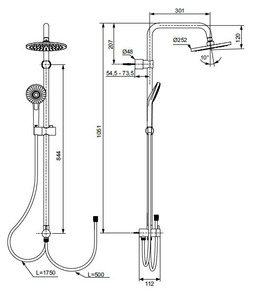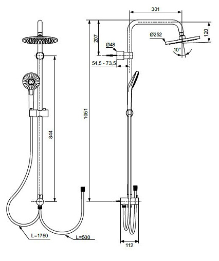 Душевая система для установки с настенным смесителем