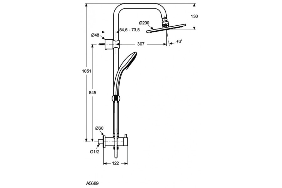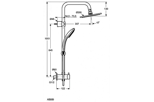 Ideaduo, гарнитур с верхним душем, 3 режима, 20 см, round, арт. A5689AA, Ideal Standard