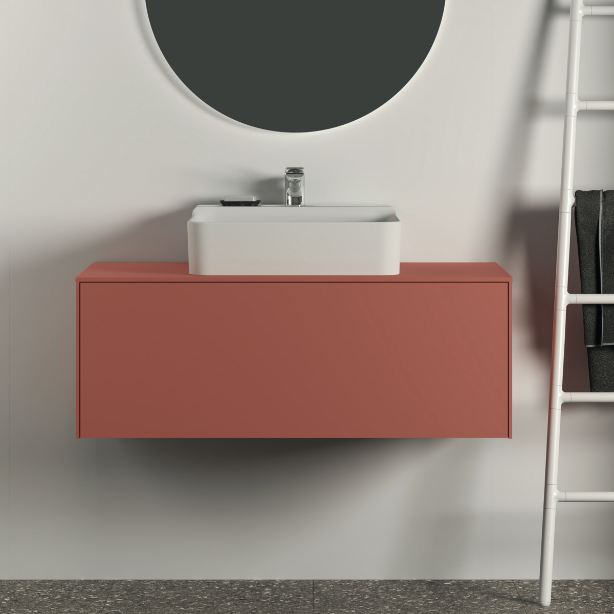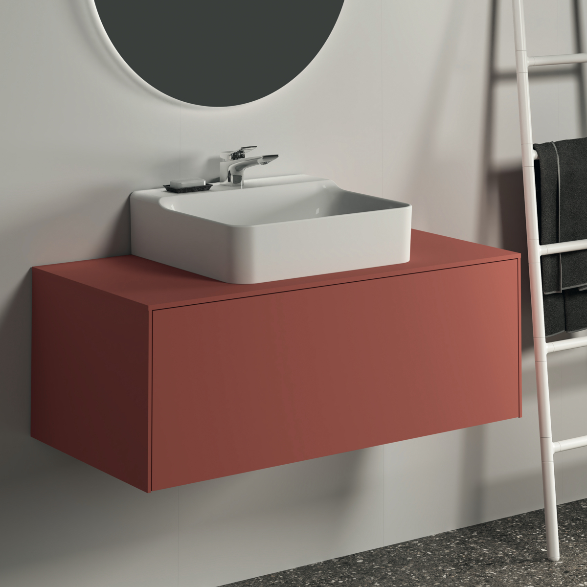 CONCA Тумба 100 см для раковины, центральный вырез в столешнице. Комбинированная система для удобного использования (открытие "Push to open" + закрытие "Soft close"). Внутренняя отделка ящиков цвета антрацит. 1 ящик. Рекомендуется сифон Space Saving EE23033967 (заказывается дополнительно). Для монтажа с раковинами Conca 40/50/60/80 см (с шлифованной нижней поверхностью) или Conca vessel 45/60 см или Extra 45/50/60/70/80 см (с шлифованной нижней поверхностью) или Extra vessel 50/60 см или Ipalyss vessel 40/55/60/65/80 см или Linda-X 50/60/75 см (с шлифованной нижней поверхностью)