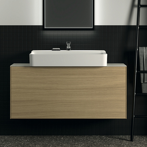 CONCA Тумба 120 см для раковины, узкая проекция 37 см, без столешницы. Комбинированная система для удобного использования (открытие "Push to open" + закрытие "Soft close"). Внутренняя отделка ящиков цвета антрацит. 1 внешний и 1 внутренний ящик. Для монтажа со столешницей из литьевого мрамора (без выреза / вырез под заказ) 120 см T4347. Рекомендуется сифон Space Saving EE23033967 (заказывается дополнительно)