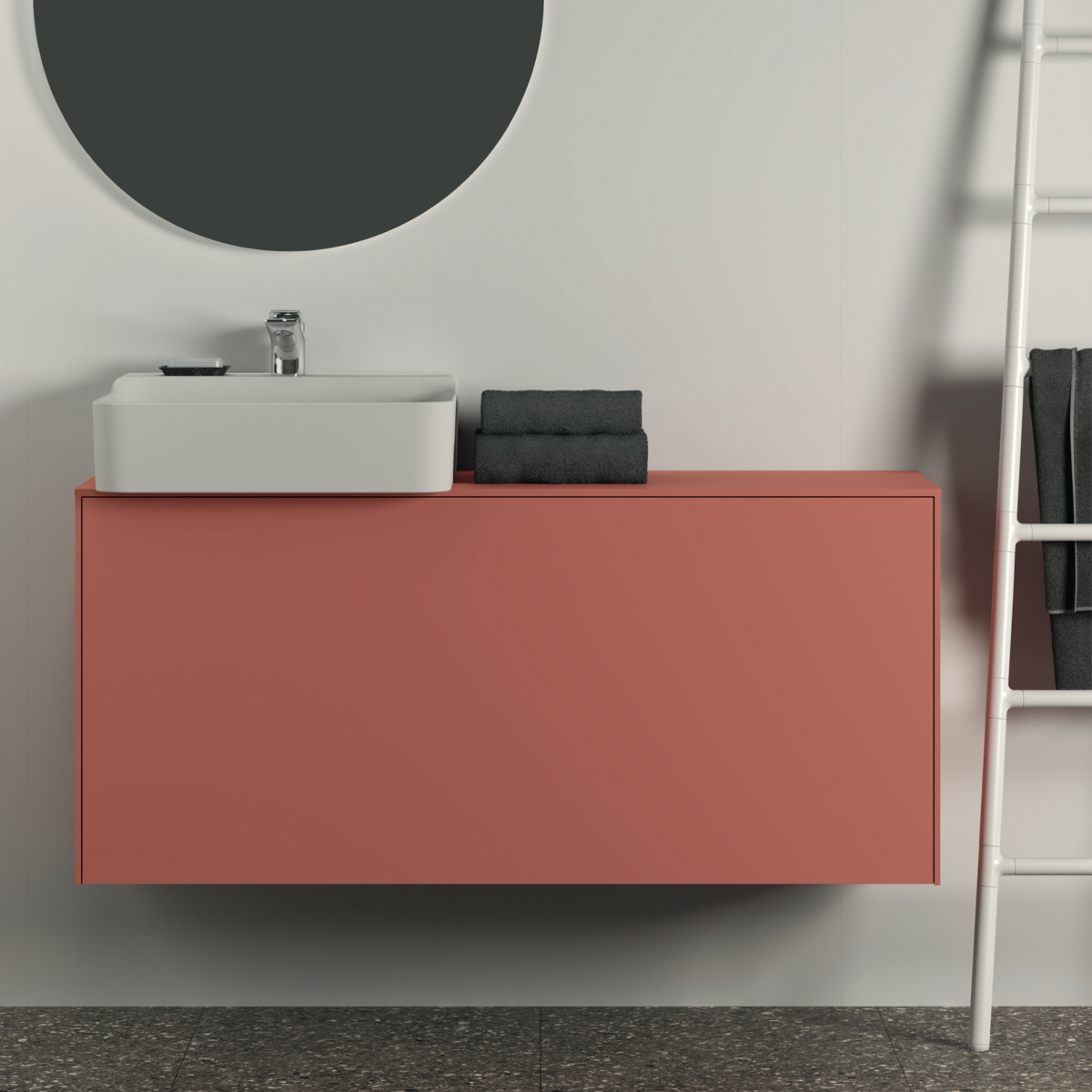 Модуль под раковину Conca 120х37,3х55 см, 1 ящик, вырез в столешнице под заказ, матовый закат, система push-to-open