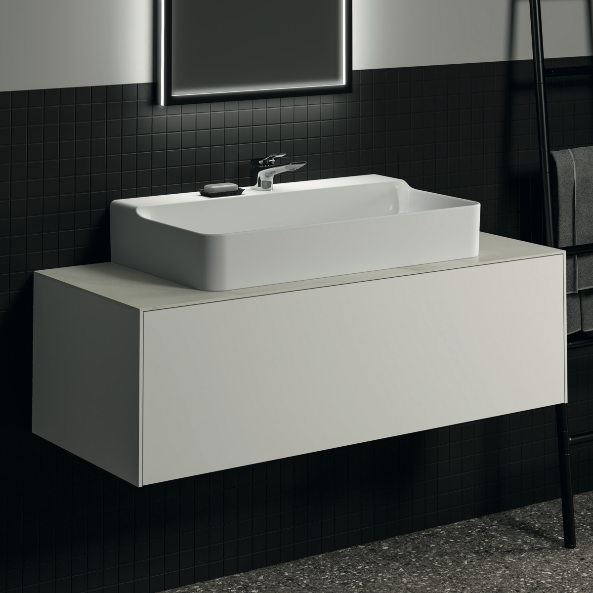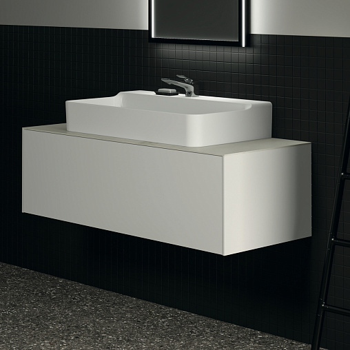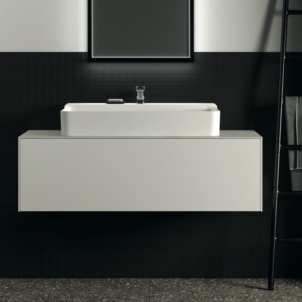 CONCA Тумба 120 см для раковины, без столешницы. Комбинированная система для удобного использования (открытие "Push to open" + закрытие "Soft close"). Внутренняя отделка ящиков цвета антрацит. 1 ящик. Для монтажа со столешницей из литьевого мрамора (без выреза / вырез под заказ) 120 см T3972.