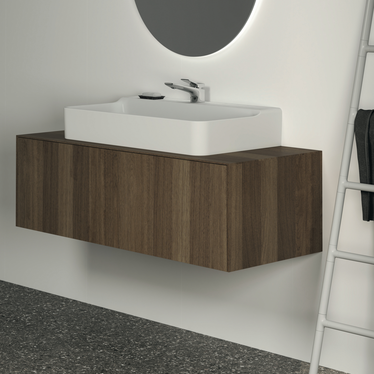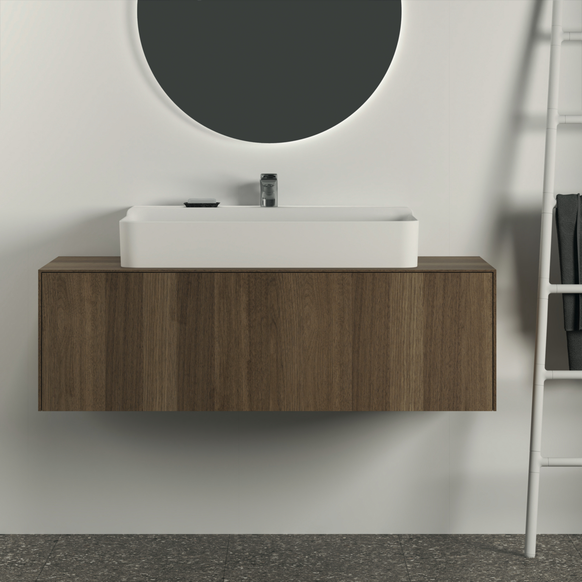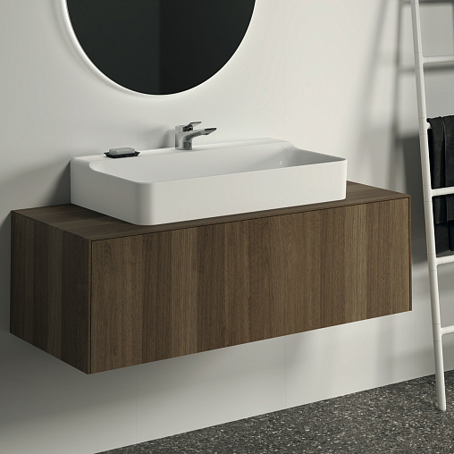 CONCA Тумба 120 см для раковины, центральный вырез в столешнице. Комбинированная система для удобного использования (открытие "Push to open" + закрытие "Soft close"). Внутренняя отделка ящиков цвета антрацит. 1 ящик. Рекомендуется сифон Space Saving EE23033967 (заказывается дополнительно). Для монтажа с раковинами Conca 40/50/60/80/100 см (с шлифованной нижней поверхностью) или Conca vessel 45/60 см или Extra 45/50/60/70/80/100 см (с шлифованной нижней поверхностью) или Extra vessel 50/60 см или Ipalyss vessel 40/55/60/65/80 см или Linda-X 50/60/75 см (с шлифованной нижней поверхностью)