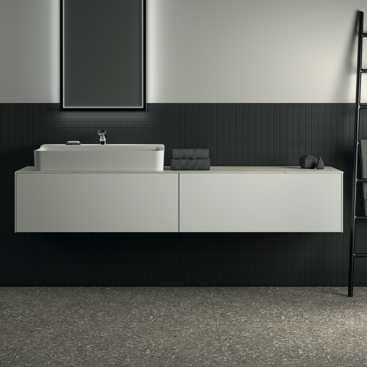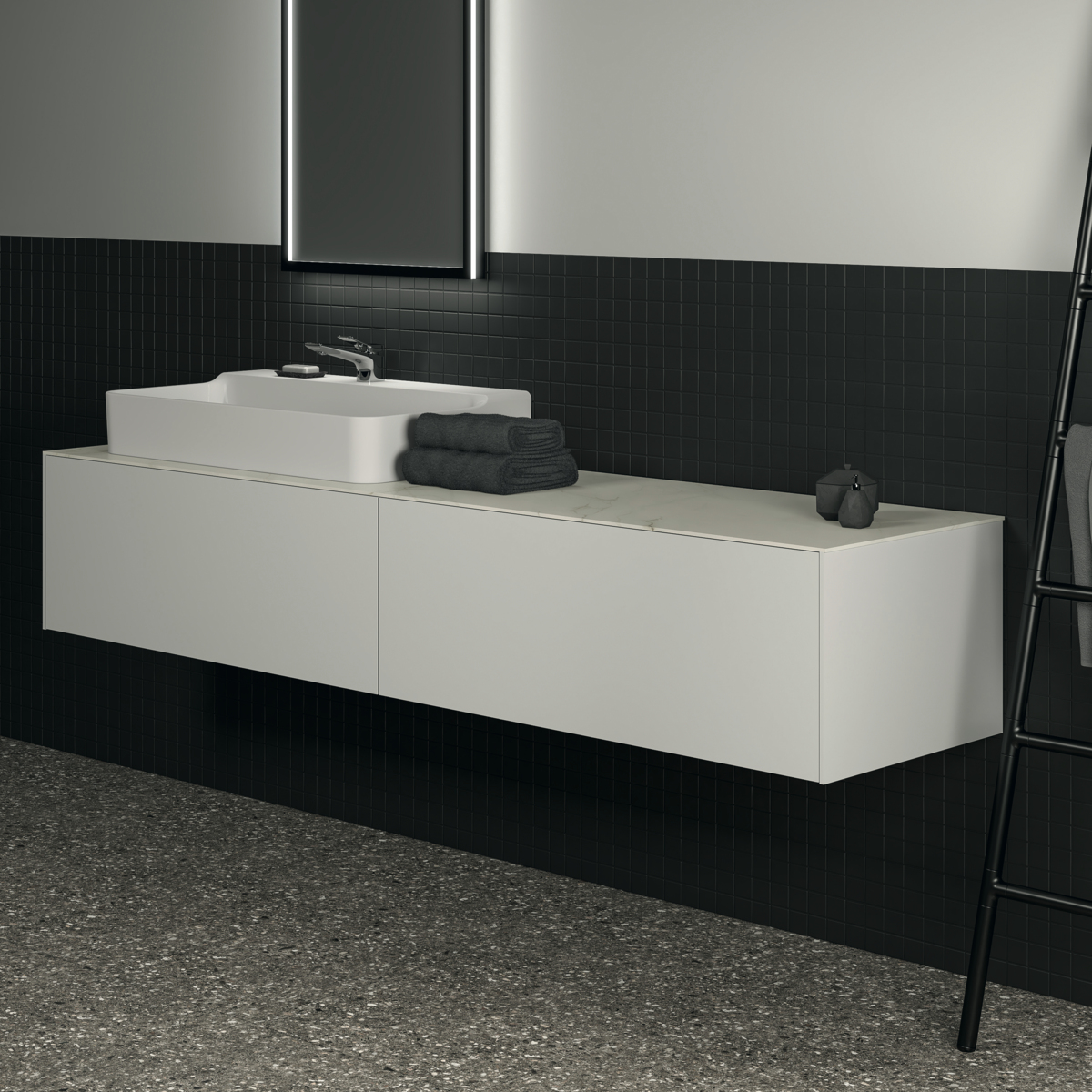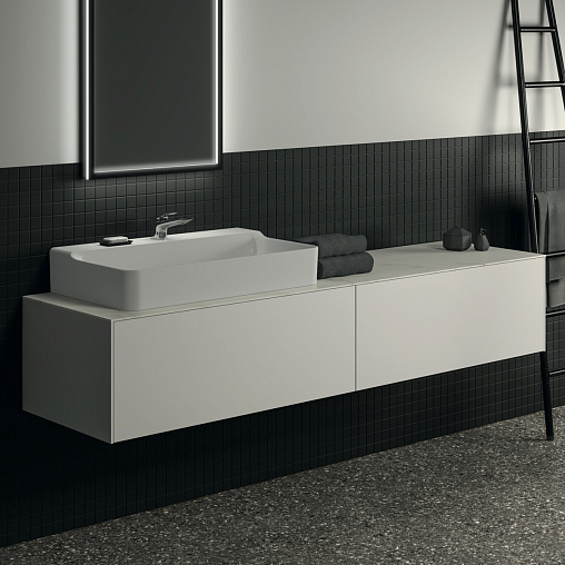 CONCA Тумба 200 см для раковины, без столешницы. Комбинированная система для удобного использования (открытие "Push to open" + закрытие "Soft close"). Внутренняя отделка ящиков цвета антрацит. 2 ящика. Для монтажа со столешницей из литьевого мрамора (без выреза / вырез под заказ) 200 см T4204.