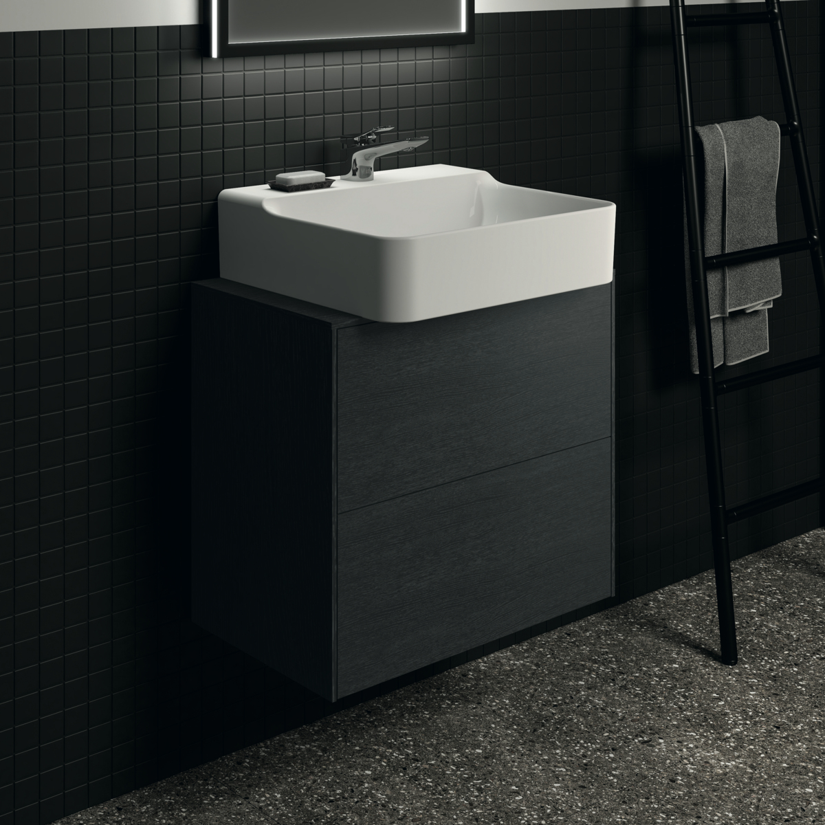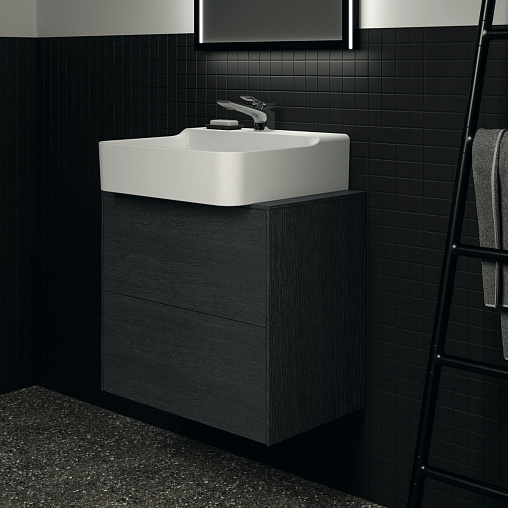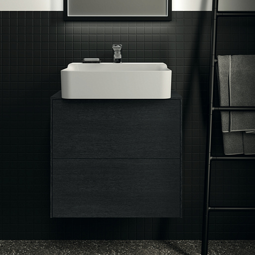 CONCA Тумба 60 см для раковины, узкая проекция 37 см, центральный вырез в столешнице. Комбинированная система для удобного использования (открытие "Push to open" + закрытие "Soft close"). Внутренняя отделка ящиков цвета антрацит. 2 внешних ящика. Для монтажа с раковинами Conca 40/50 см (с шлифованной нижней поверхностью) или Conca vessel 45 см или Extra 45/50 см (с шлифованной нижней поверхностью) или Extra vessel 50 см или Ipalyss vessel 40/55/60 см или Linda-X 50/60 см (с шлифованной нижней поверхностью)